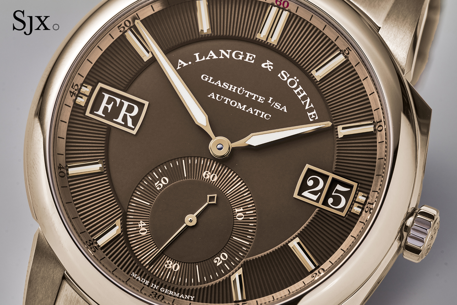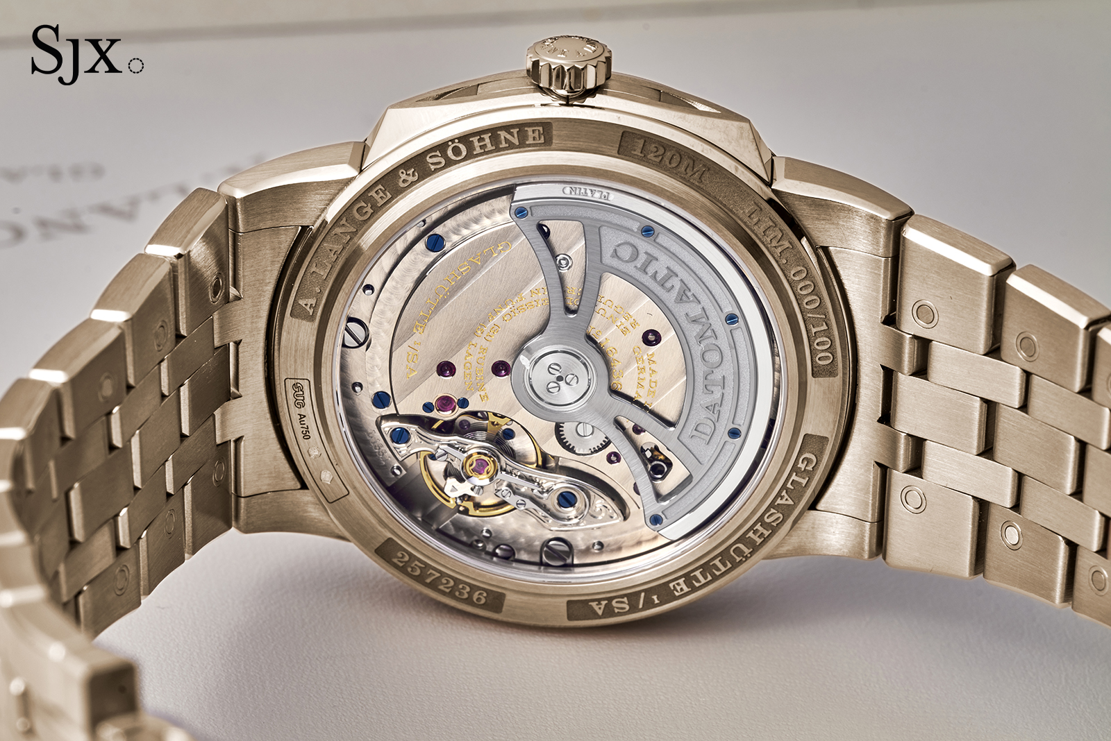 Like any Lange, the company puts most of its own efforts into the movement, and lets suppliers deal with the rest, hence the maker’s mark for Sächsische Uhrentechnologie GmbH (SUG) engraved on the case back. This means that the L155.1 Datomatic movement gets the brand’s full attention, and it shows.