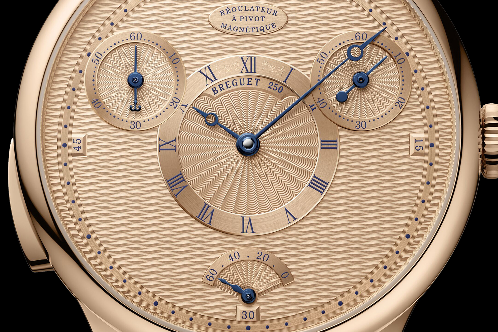 Like all Breguet dials, this is solid gold – 18k Breguet gold in this case – but it does away with the silver plating that characterises the typical Breguet dial, retaining the tone-on-tone appearance of the pocket watches.