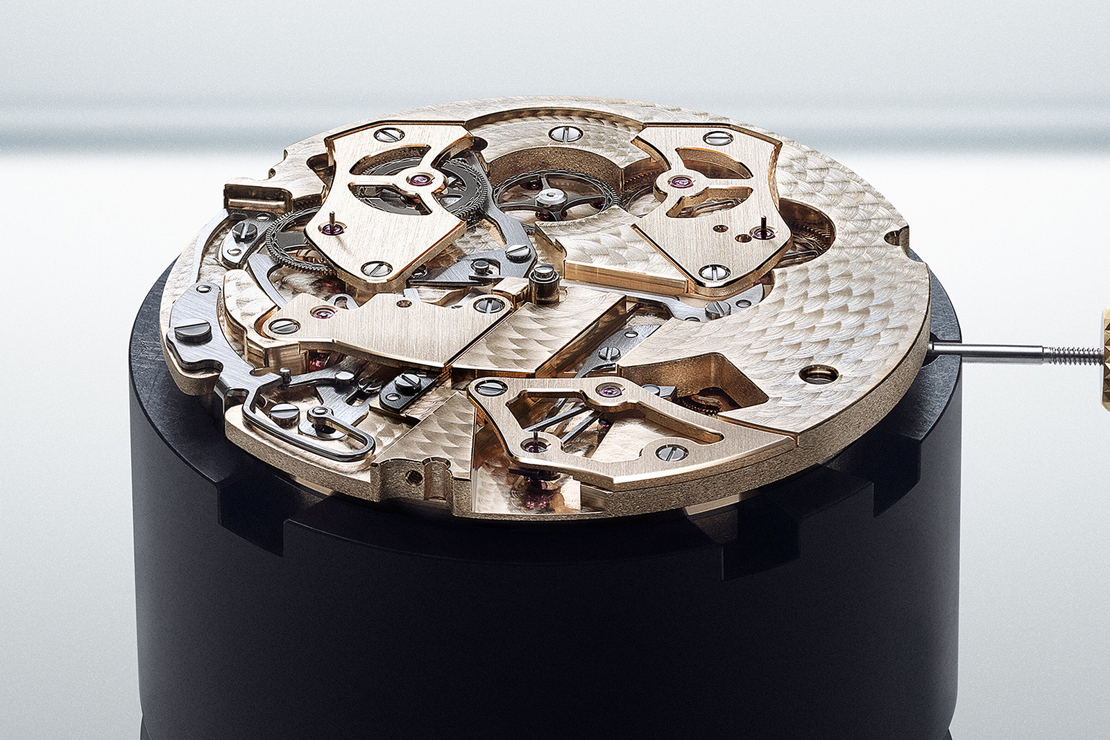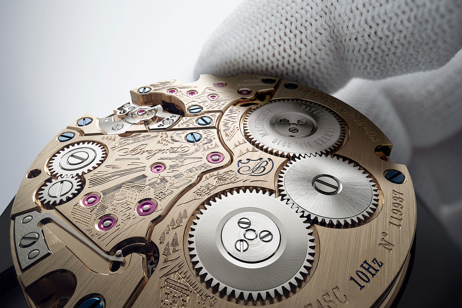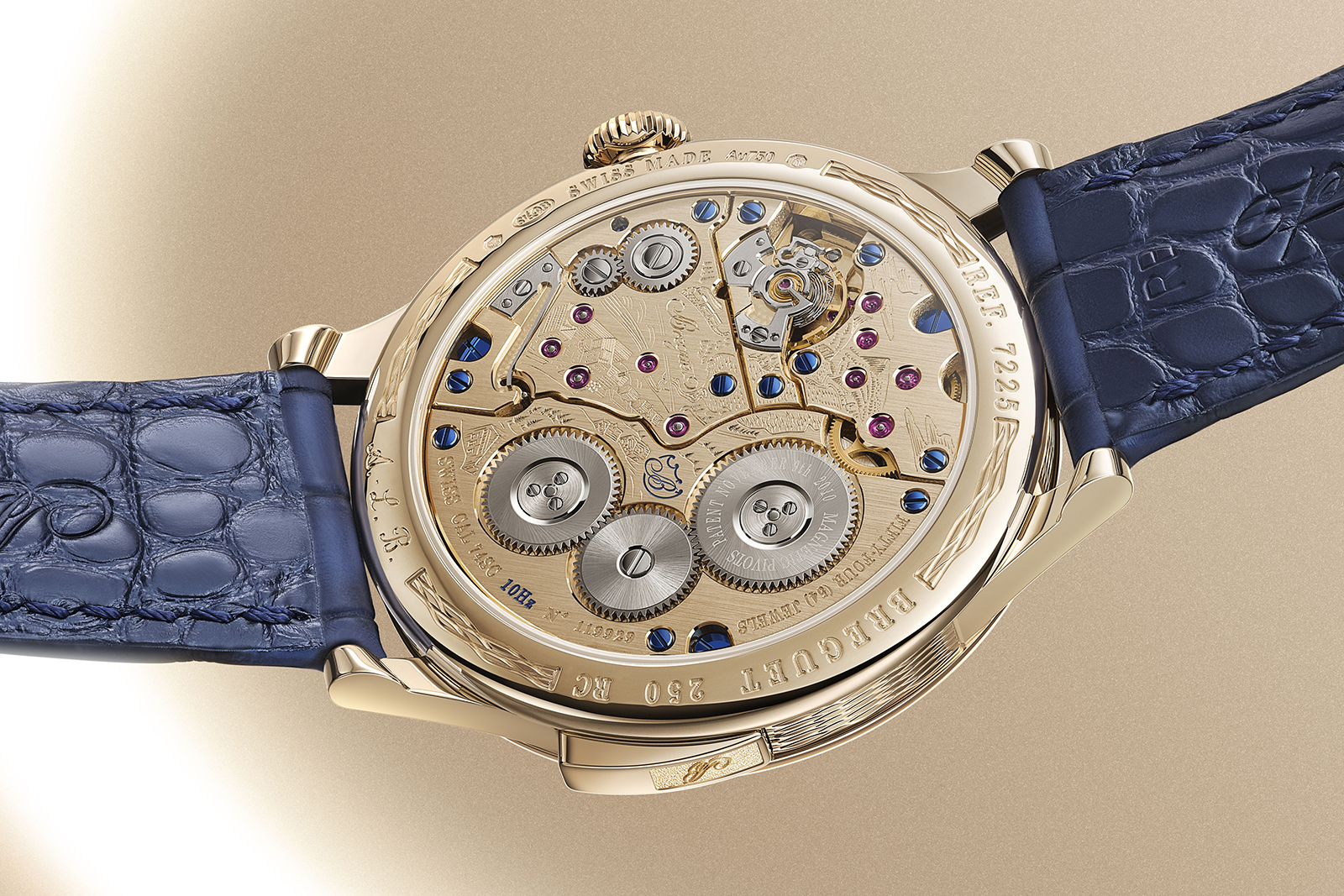 The movement has, however, been reworked in terms of aesthetics and details. The bridges are finished in Breguet gold to match the case, and hand-engraved with a bird’s eye view of the modern-day Breguet manufacture in the Vallee de Joux.