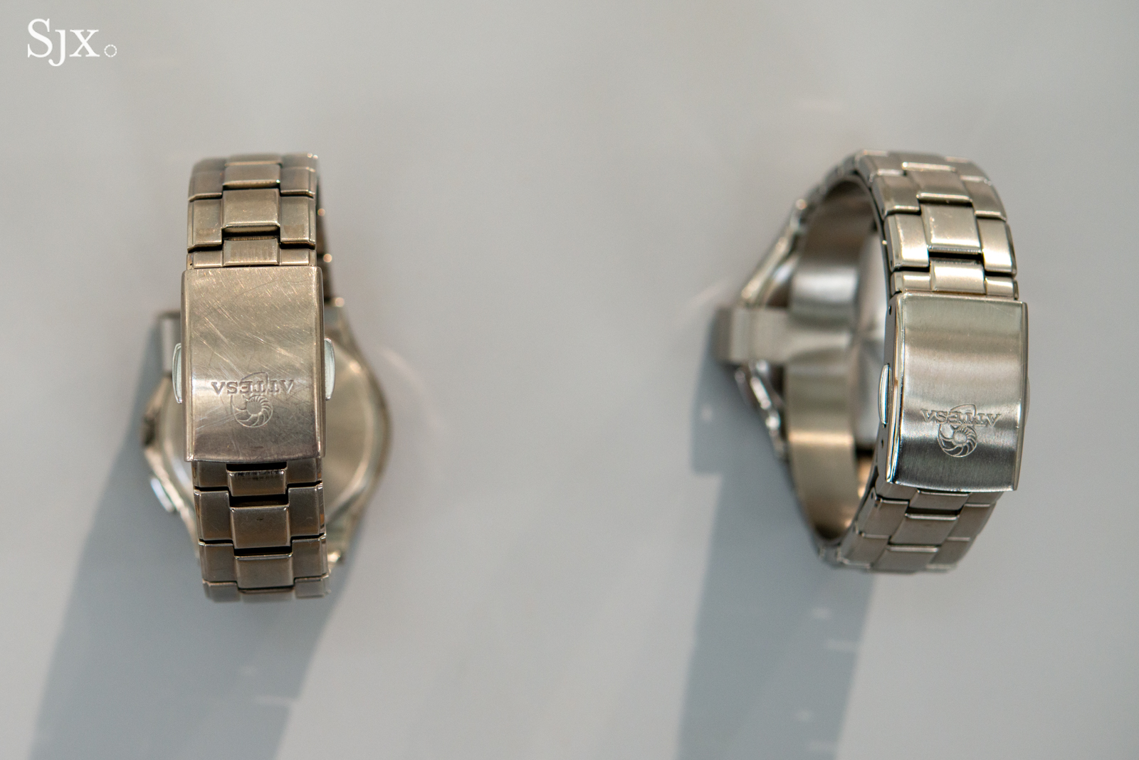 What the three watches have in common is also the main thing that makes them appealing: their Super Titanium cases and bracelets with recrystallised titanium center links. Citizen uses pure titanium, known as grade 2, as the base material for these components. Known for its softness, grade 2 titanium is prone to pick up scratches with a Vickers rating of about 150 Hv. For the purposes of comparison, 316L stainless steel, used by everyone from Omega to Patek Philippe, is rated to about 220 Hv.