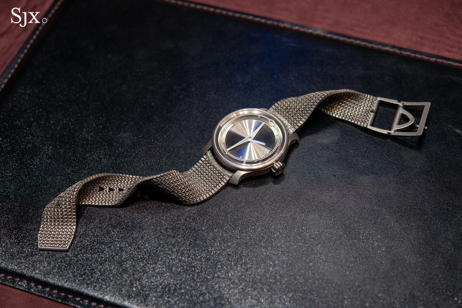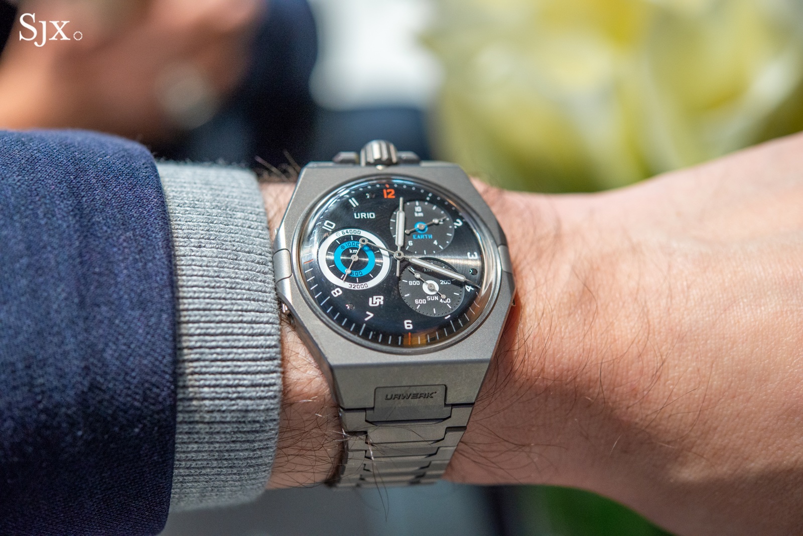 Interestingly, the case is not all titanium; it features a steel case back to offer colour contrast on the winglets on either side of the case. The heavier case back also helps lower the watch’s center of gravity, which contributes to a stable feel on the wrist despite it looking a bit large.