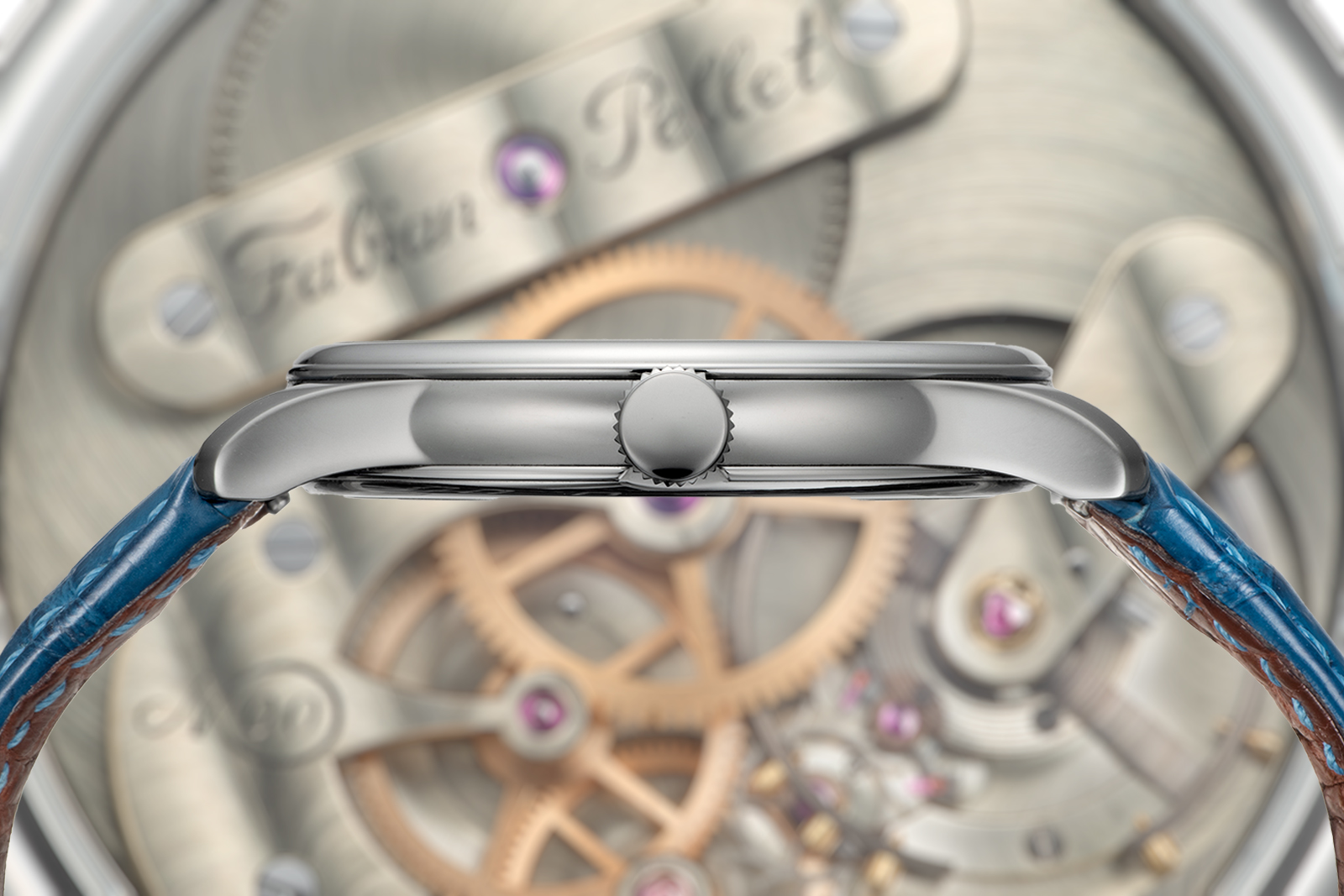 One last detail inside Pellet’s L’Essentiel that pays tribute to Albert Potter’s work is the inverted barrel. The sharper eyes might have noticed there is no visible click wheel atop of the barrel, and no visible link with the keyless works.
