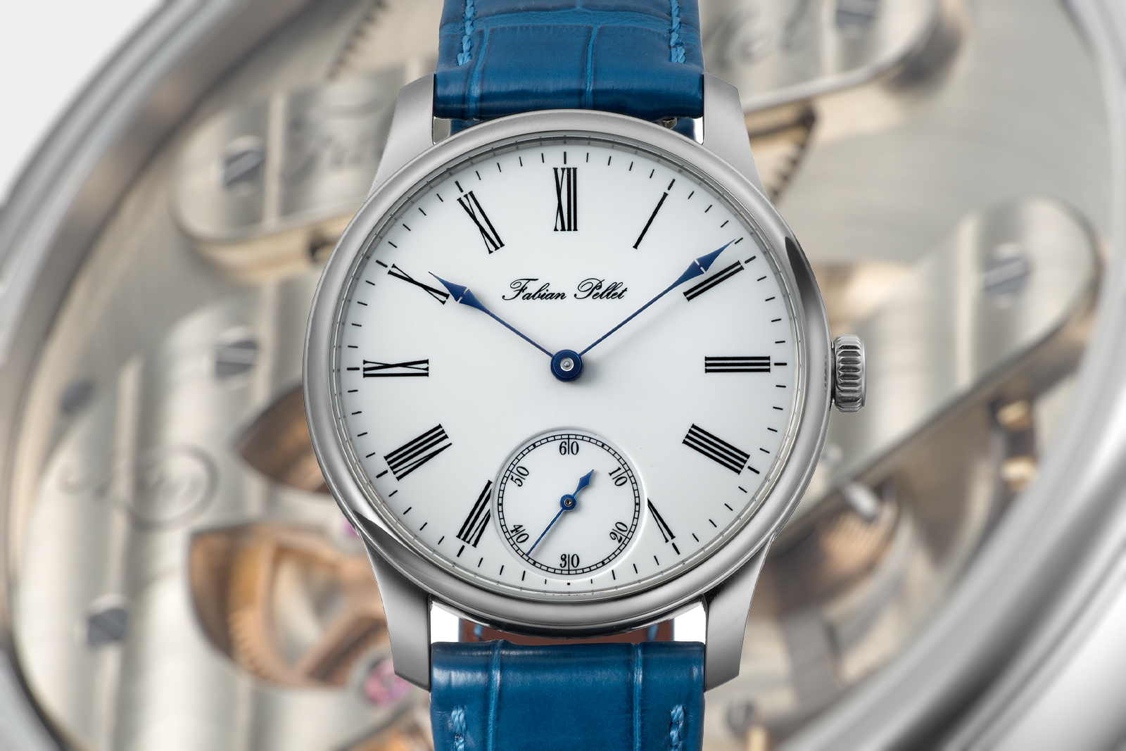 Born in Lausanne – a city not necessarily known for its watchmaking heritage – Fabian Pellet completed his apprenticeship in the famed Vallée de Joux and then pursued further specialisation in watch restoration in Le Locle. His time spent in the region is subtly apparent in his work with the L’Essentiel, since the dial especially is reminiscent of classic pocket watches from Le Locle.