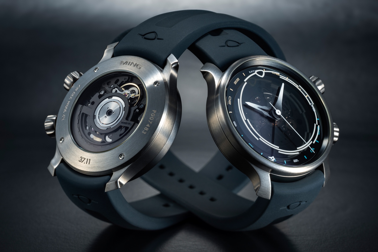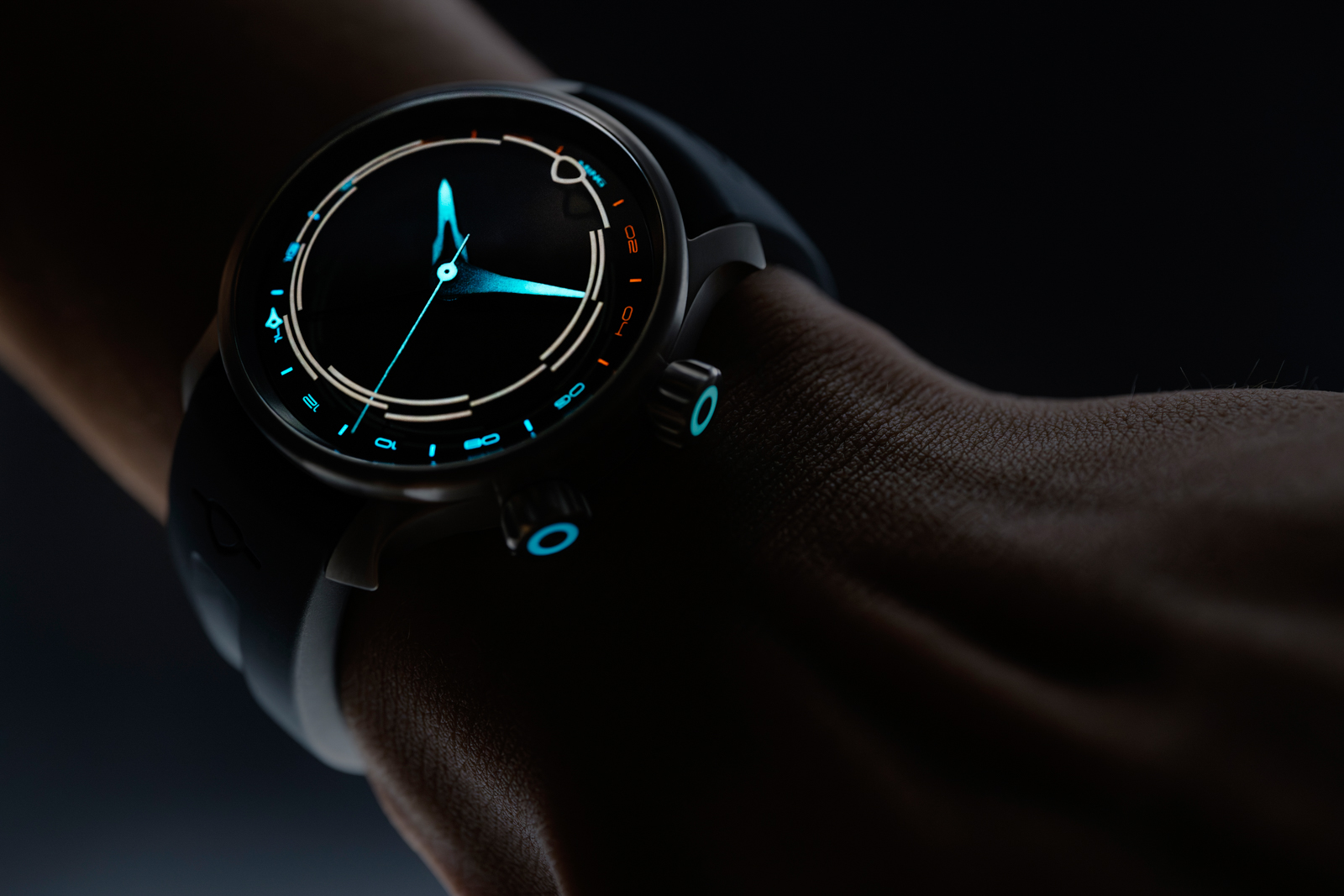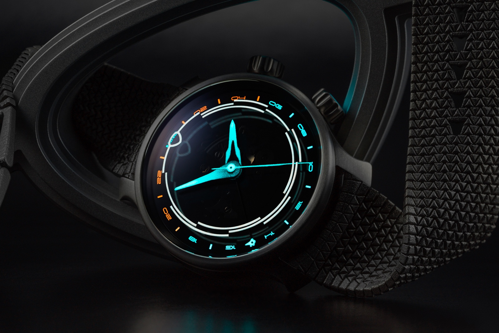 Ming’s latest release, the 37.11 Odyssey, builds on the brand’s reputation for luminous, multi-layered dials and inventive designs. The Odyssey takes the visual depth seen in the Bluefin and Uni to the next level with a smoked sapphire dial that reveals the movement beneath, paired with shark-tooth hands and a multi-coloured luminous display.