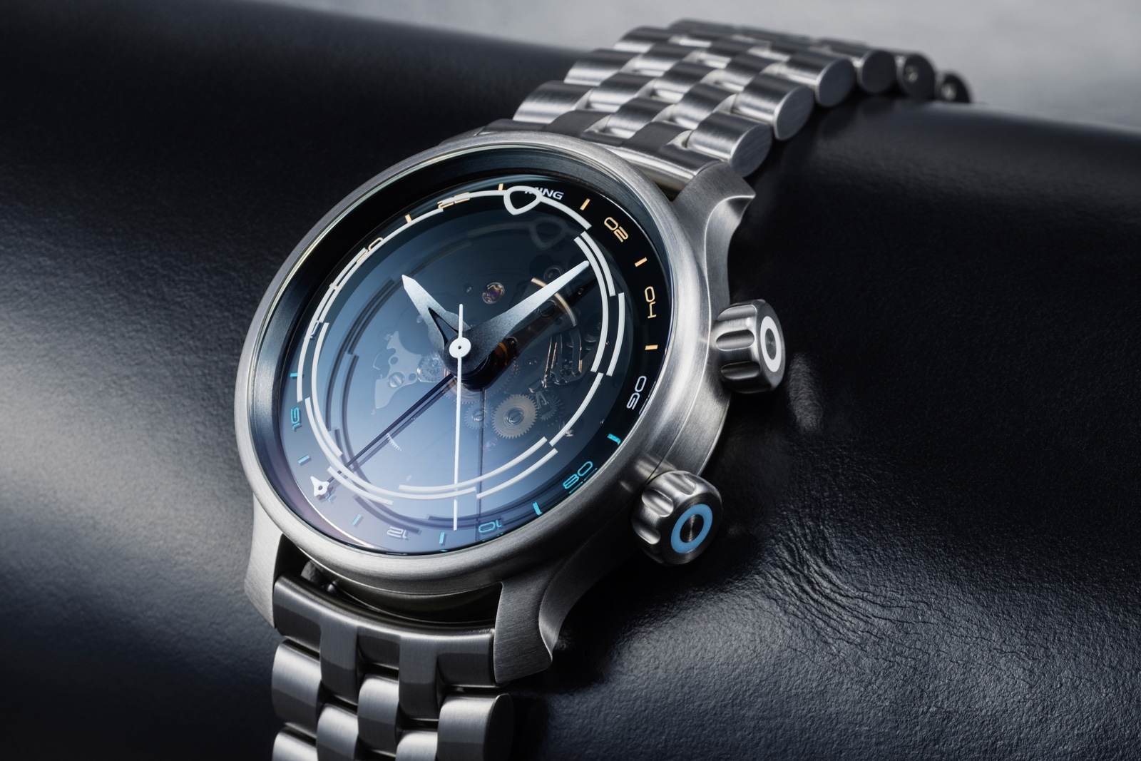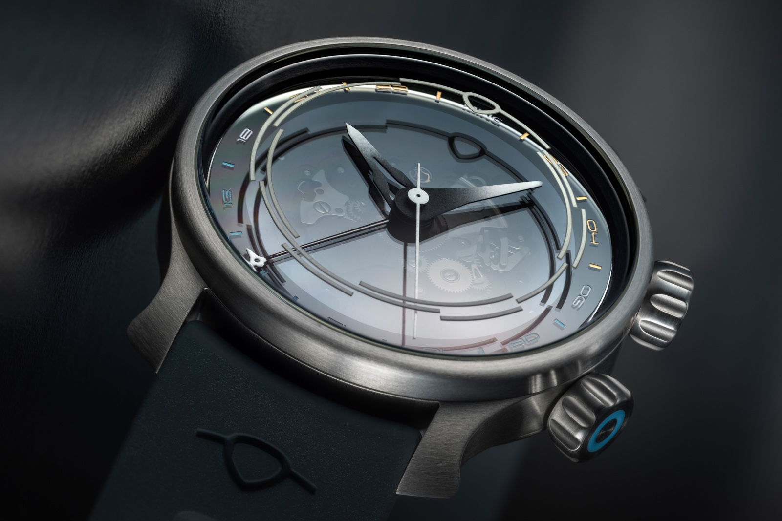 The dual-crown case design can be seen as an homage to the Super Compressor format, but it’s more forward-looking than nostalgic; Ming has created its own dynamic design language that manages to be futuristic without looking gimmicky. And it does more than just look good—the crown at two o’clock, which controls the rotating dial, can be operated underwater. It’s hard to think of a use case for this functionality, short of recreating the iconic swim of Mercedes Gleitze across the English Channel, but it says a lot about the security of the case construction.