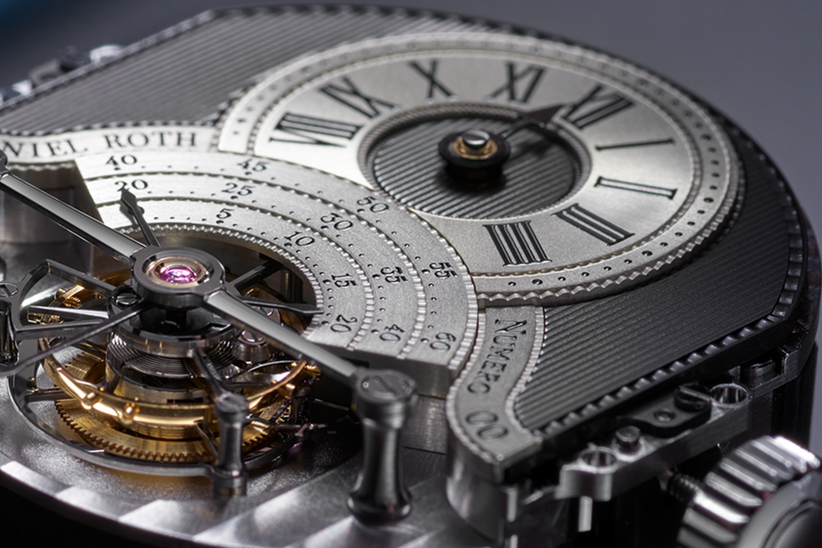 During his tenure at helm of Breguet, Mr Roth had worked with Lemania to develop a tourbillon movement that would bring the brand’s emblematic complication to a Breguet wristwatch for the first time. It was thanks to this connection that Mr Roth was able to the source tourbillon ebauches that he used to launch his brand in 1988.