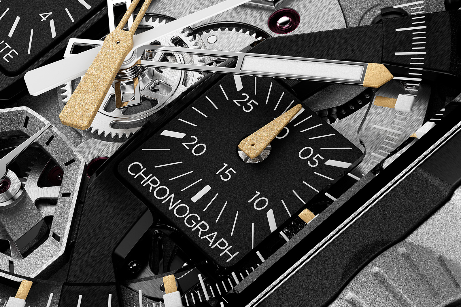 The lume plots have a surprising impact on the character of the watch, bringing a toolish feel to an overtly luxurious product. It’s a pleasing juxtaposition that is strongly coherent with the instrument-like zero reset functionality of the movement.