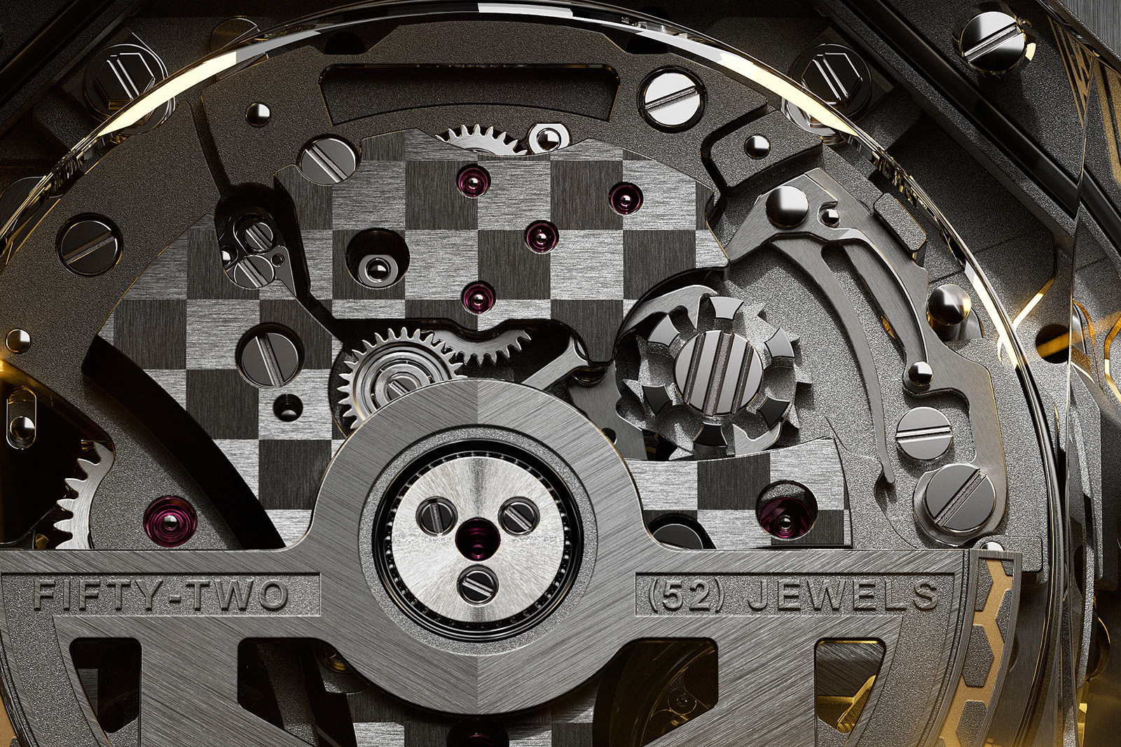 Functionally, the movement is unique, with a grande sonnerie-style winding click, which is unheard of in an automatic movement. The movement also offers a zero reset functionality, which means the seconds hand snaps back to zero when the crown is pulled, making it easy to synchronise the watch to a reference clock.