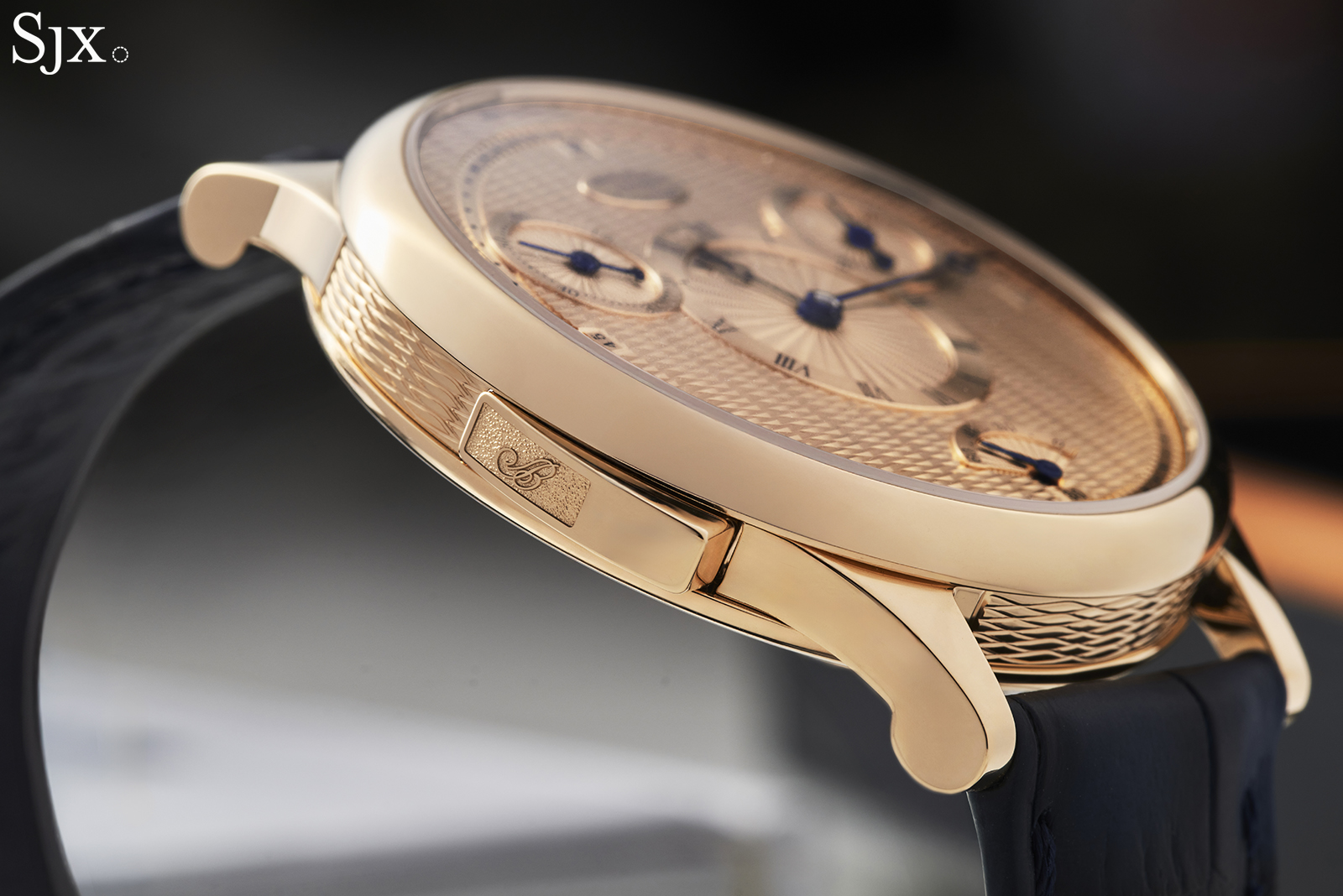 And the 7225 has a flyback seconds (sometimes also known as a “Chronostop”) that is activated by a pusher on the side of the case. The pusher, however, resembles a slide for a minute repeater for no discernible reason. But the watch is appealing enough these don’t really matter.