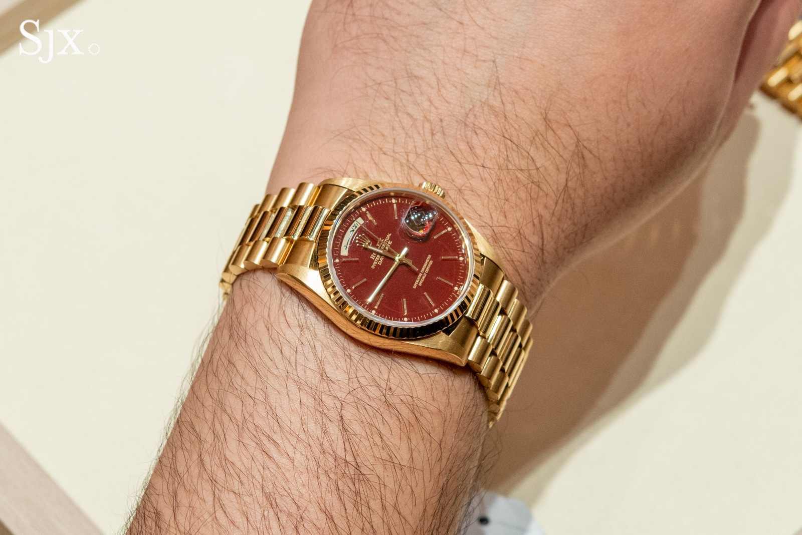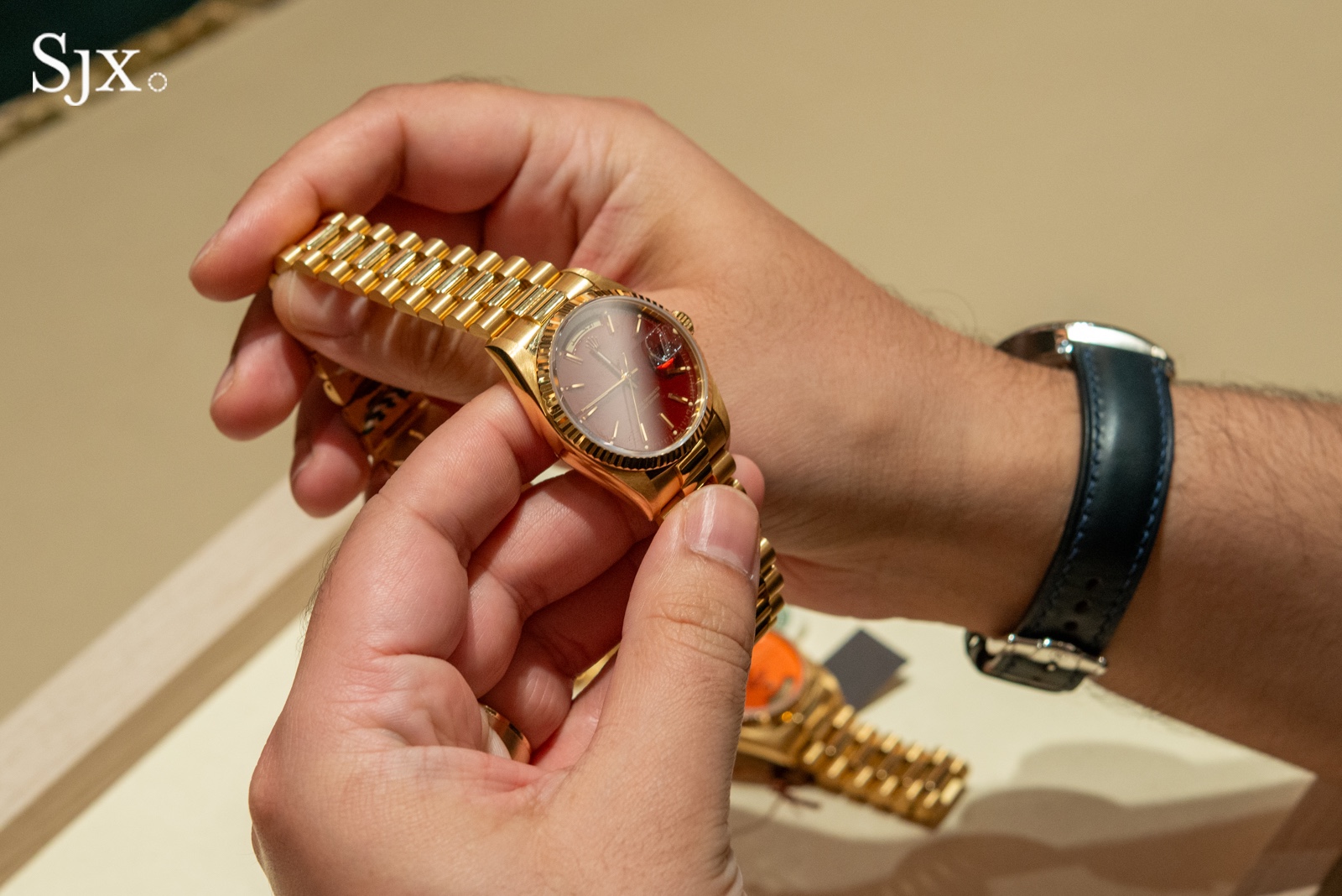 At 41 mm, the 7225 might measure large for such a watch, but the proportions are just right. The case is thin enough, while the wide dial maximises the impact of the guilloche on a gold base. If anything, the design might look odd with a smaller format, since the look comes from a pocket watch after all.