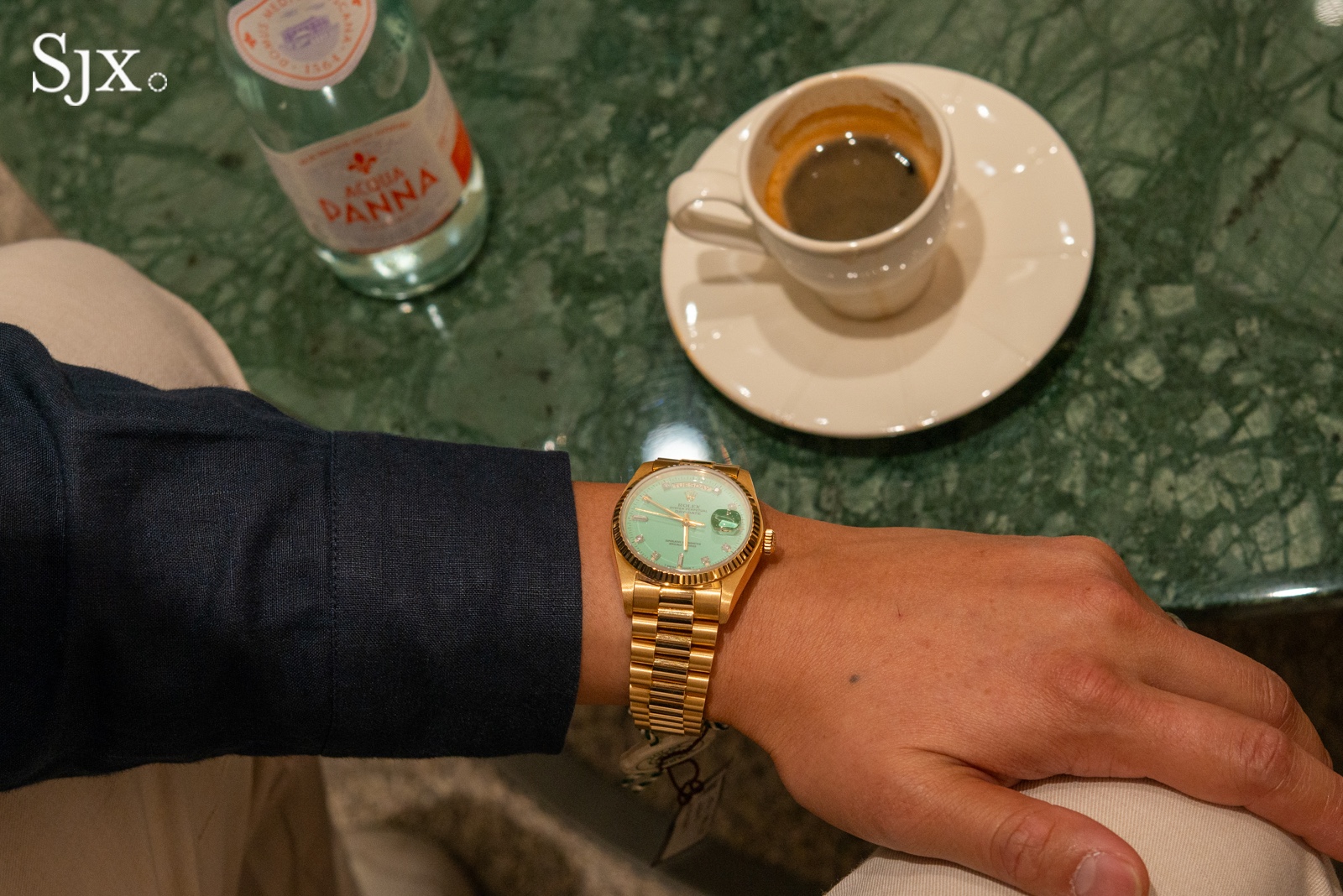 The seconds at two is a conventional seconds, while the other at ten o’clock is the “observation” seconds, otherwise known as a flyback seconds that can be instantaneously reset and restarted with the pusher at eight o’clock. I would consider this a gimmick if the 7225 was not such an impressive watch; the flyback seconds is not a major or practical complication, but adds a tiny bit of interactivity to the watch.