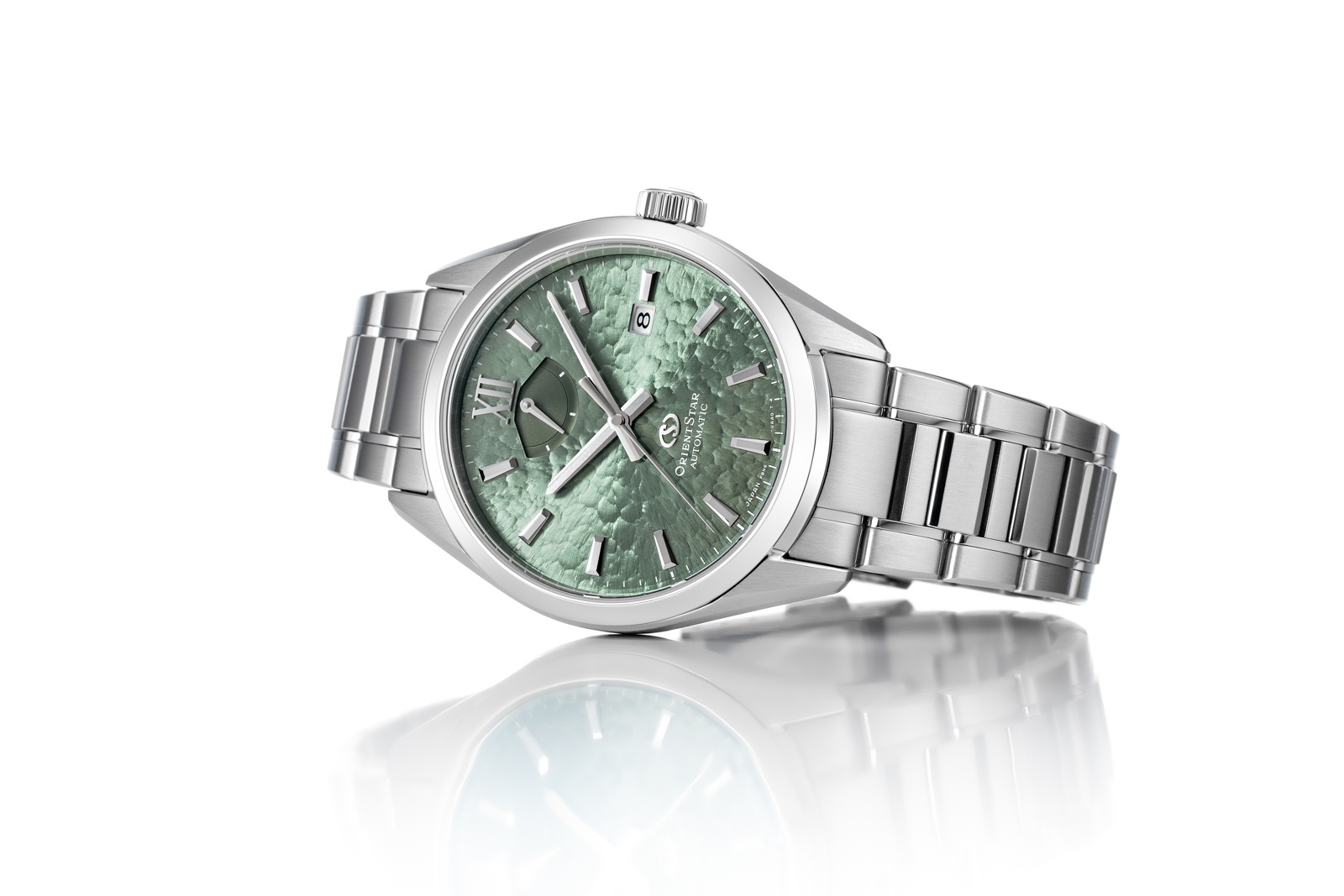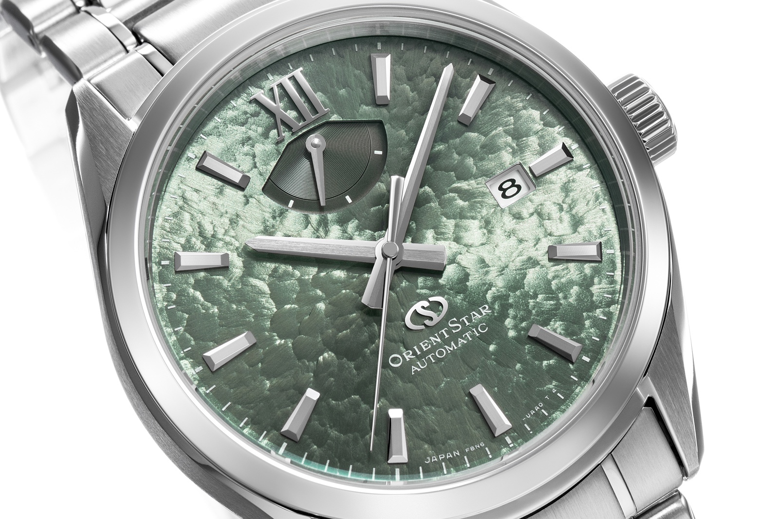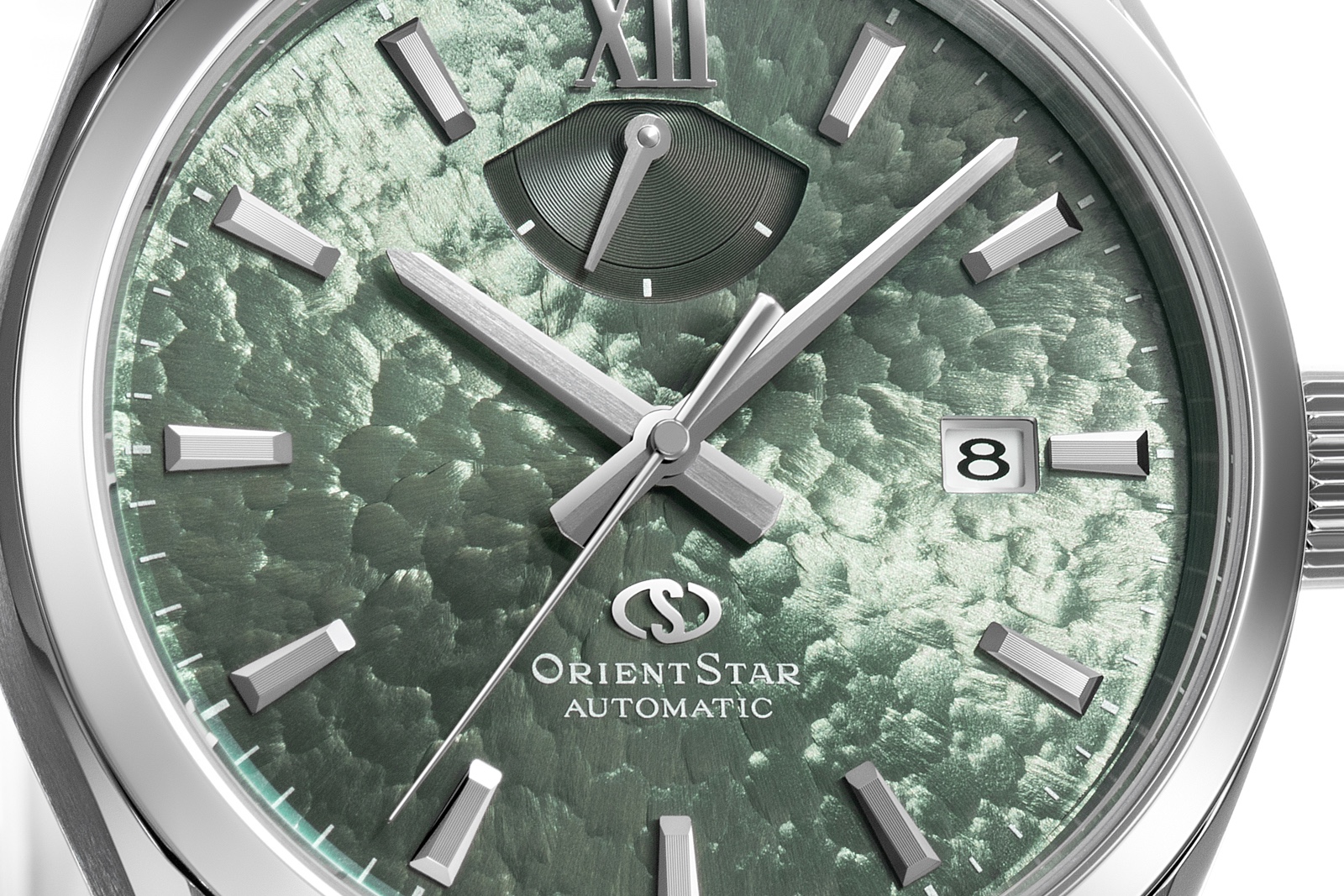 The M34’s new green dial is embossed with a hand-engraved stamp and coated with an optical multi-layer film that creates shifting hues without a trace of pigment — an effect more often associated with much costlier watches. Beneath its shimmering surface lies Orient Star’s enduring in-house F8 movement, which continues a lineage that dates back to 1971.