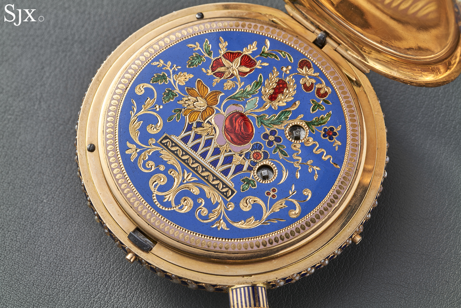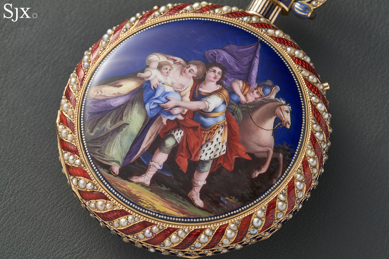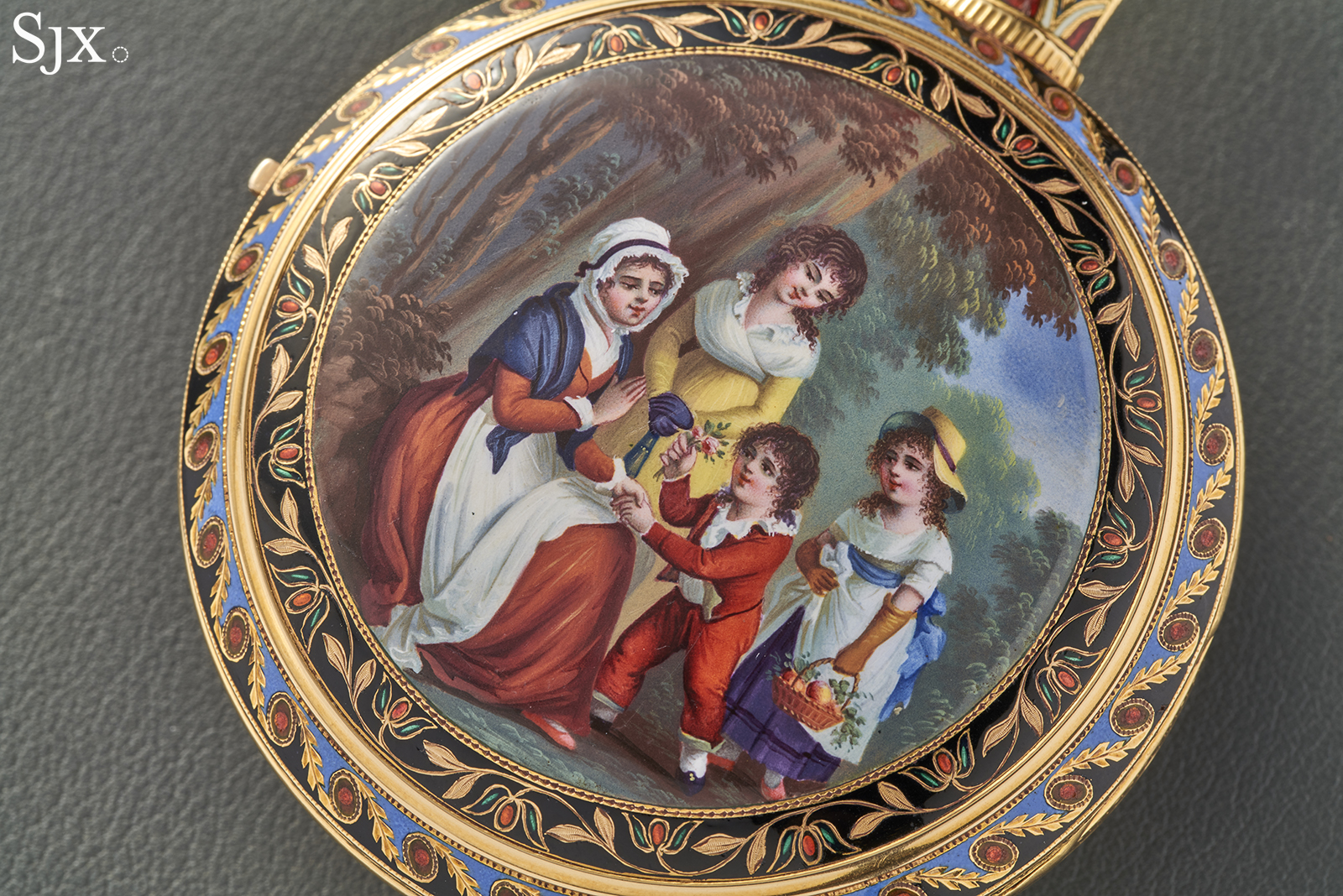 The miniature enamel, however, is almost certainly the work of a Genevan artisan. The region was, and remains, a world-leader in the decorative arts. Proof of that can be found in the Patek Philippe Museum’s extensive collection of Chinese market watches and clocks.