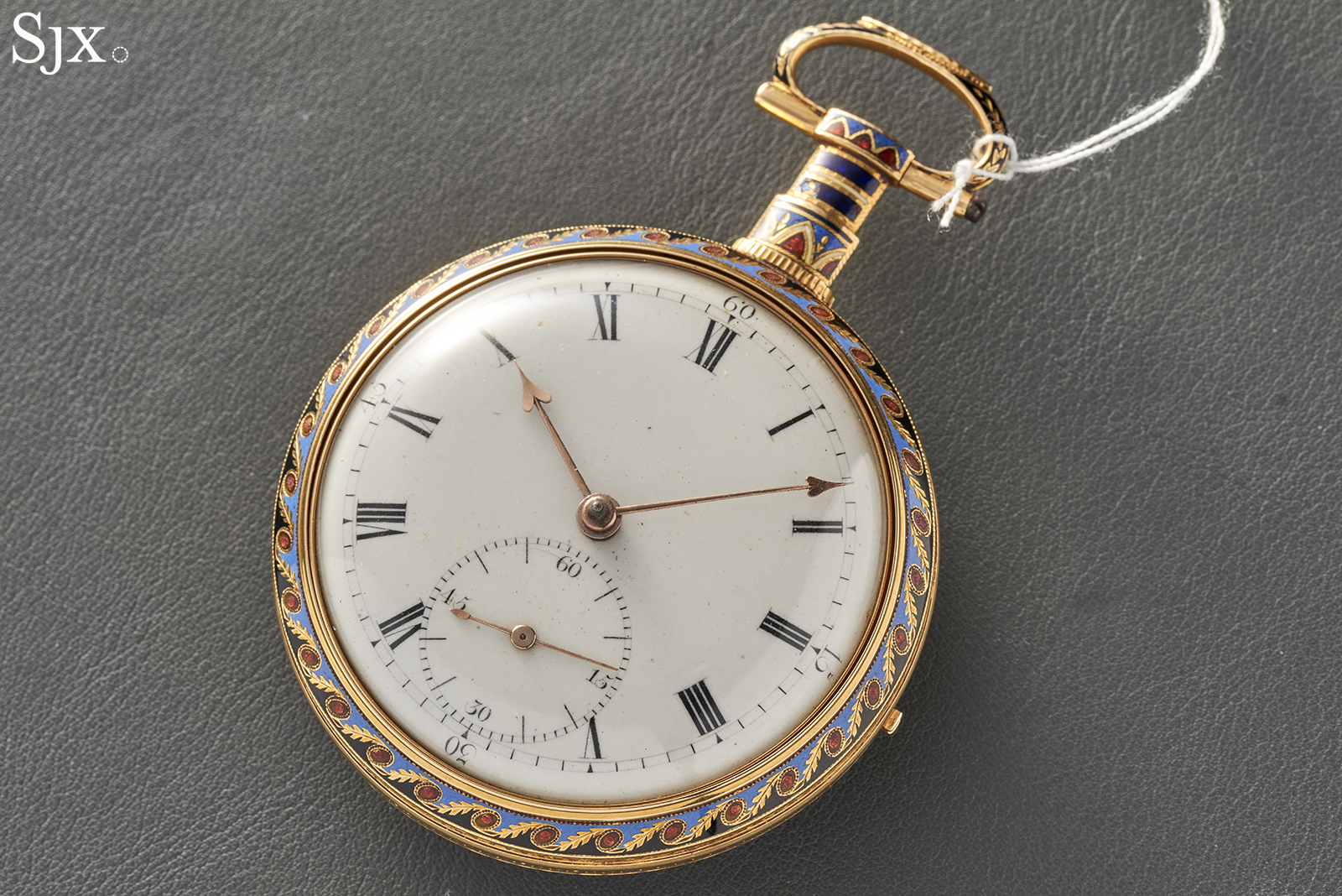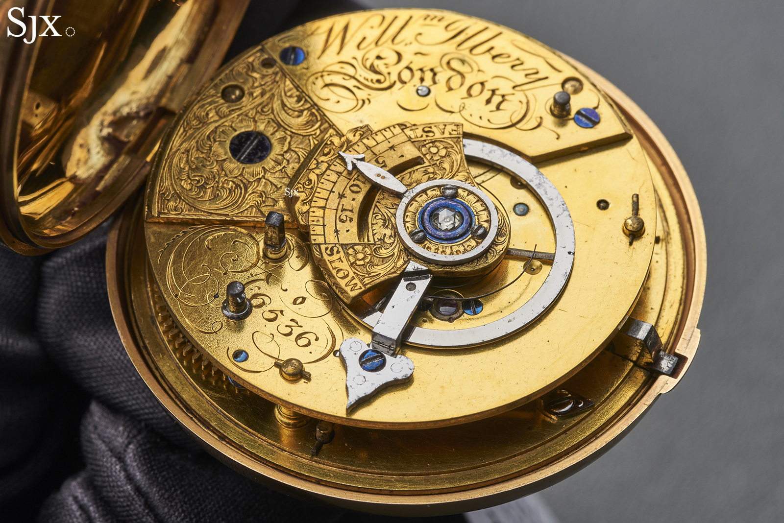 While Ilbery’s calibre Chinoise was ahead of its time, this ~1810 watch by Ilbery watch uses an antiquated fusee movement with small seconds, and a duplex escapement. Note this is a regular duplex, not the “crab tooth” duplex escapement used in some later Chinese market watches to affect a jumping seconds hand.