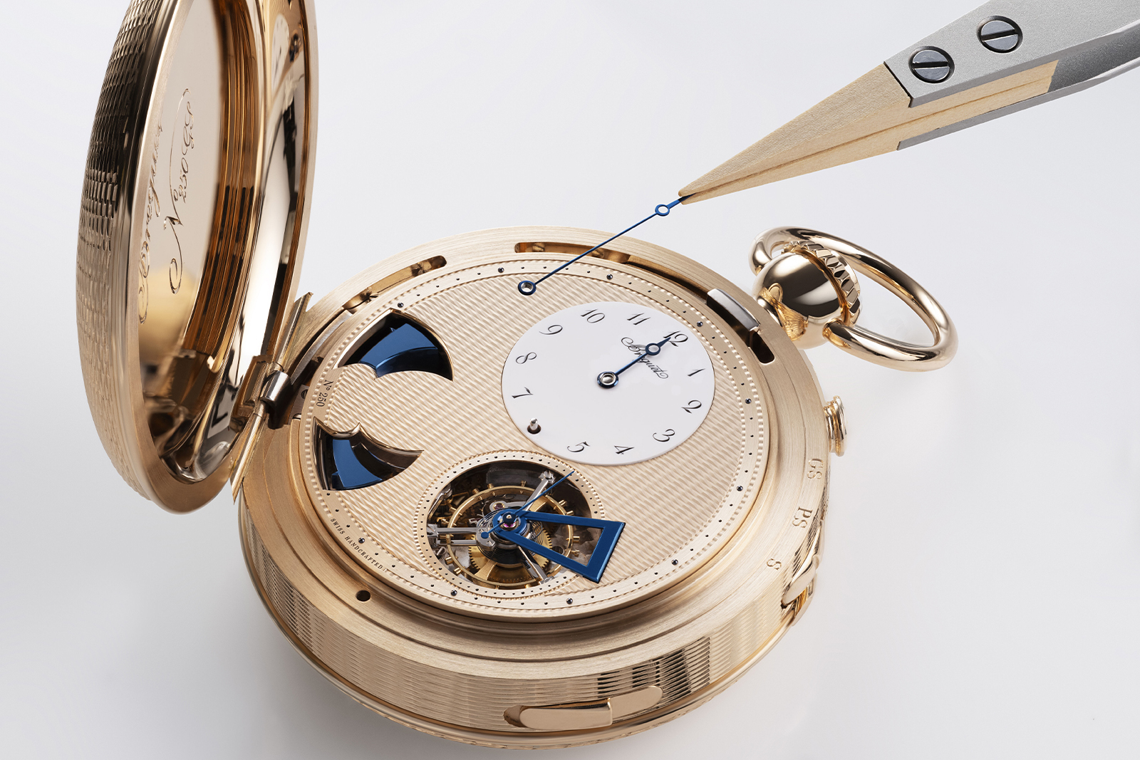 During the 2000s, Breguet launched the Montre de Poche 1907, a minute repeating tourbillon pocket clock watch with grande et petite sonnerie. At the time, several of the best brands were building new complicated pocket watches, most notably Patek Philippe, rather than scavenging ebauches. In the 20 years since, new production complicated pocket watches have disappeared from nearly every brand’s catalogue – except for Breguet’s.