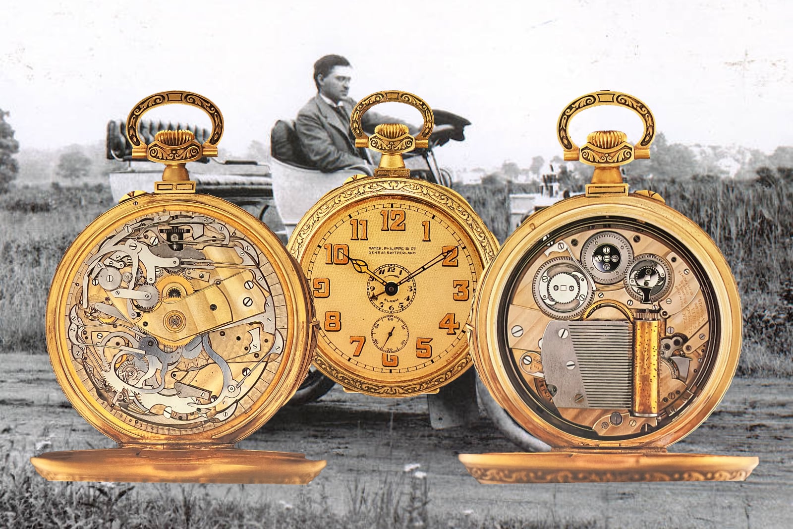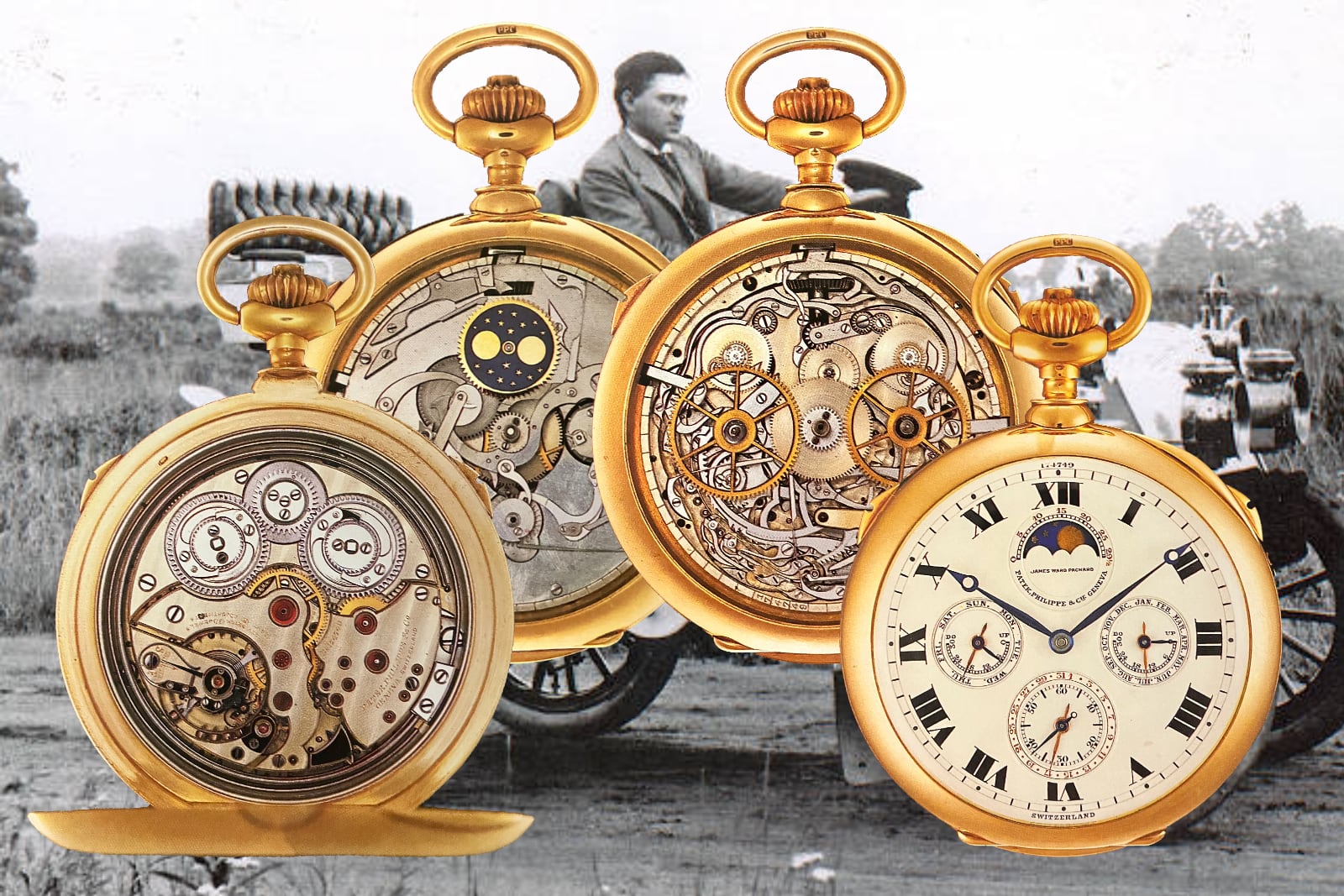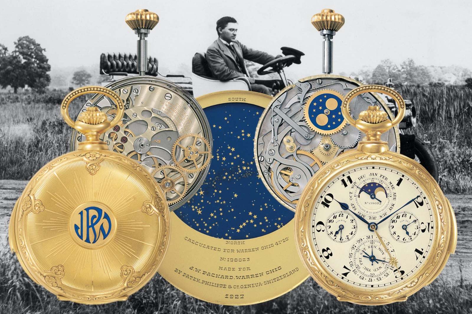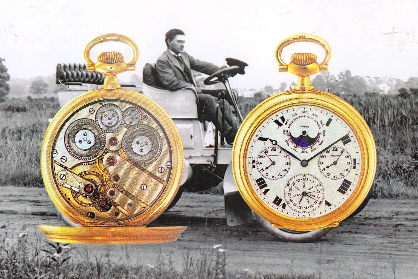 Patek Philippe “The Packard” no. 198’023 double-faced with 10 complications completed in 1927. Image – Patek Philippe/collage