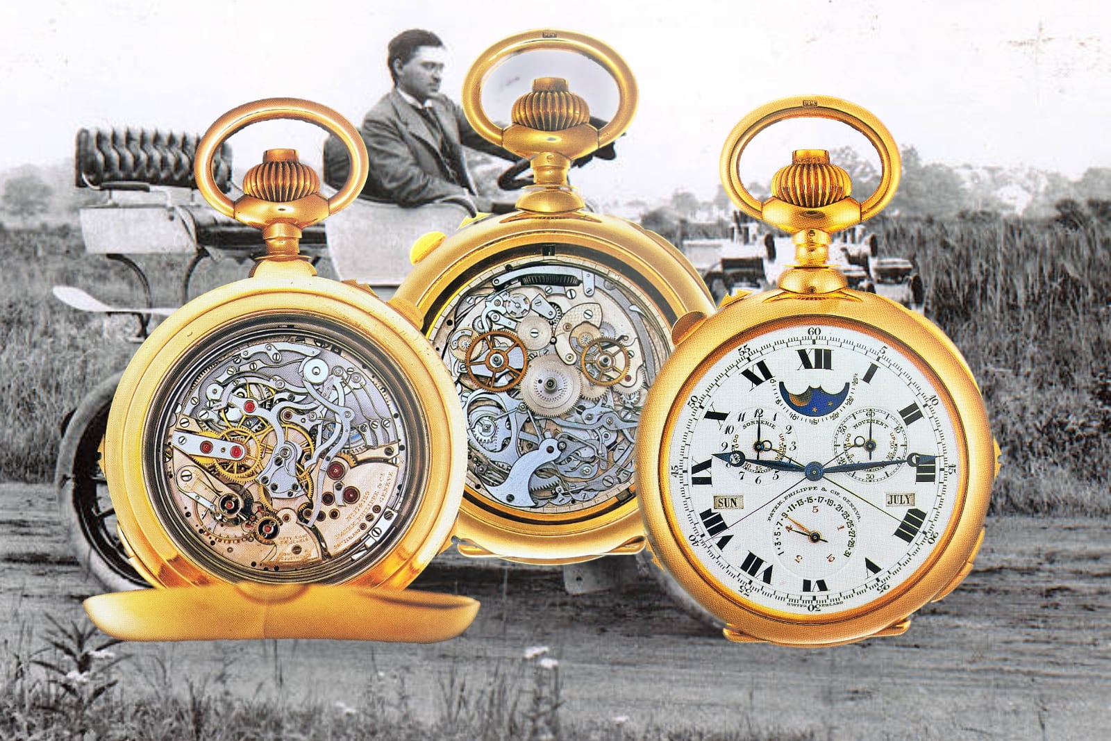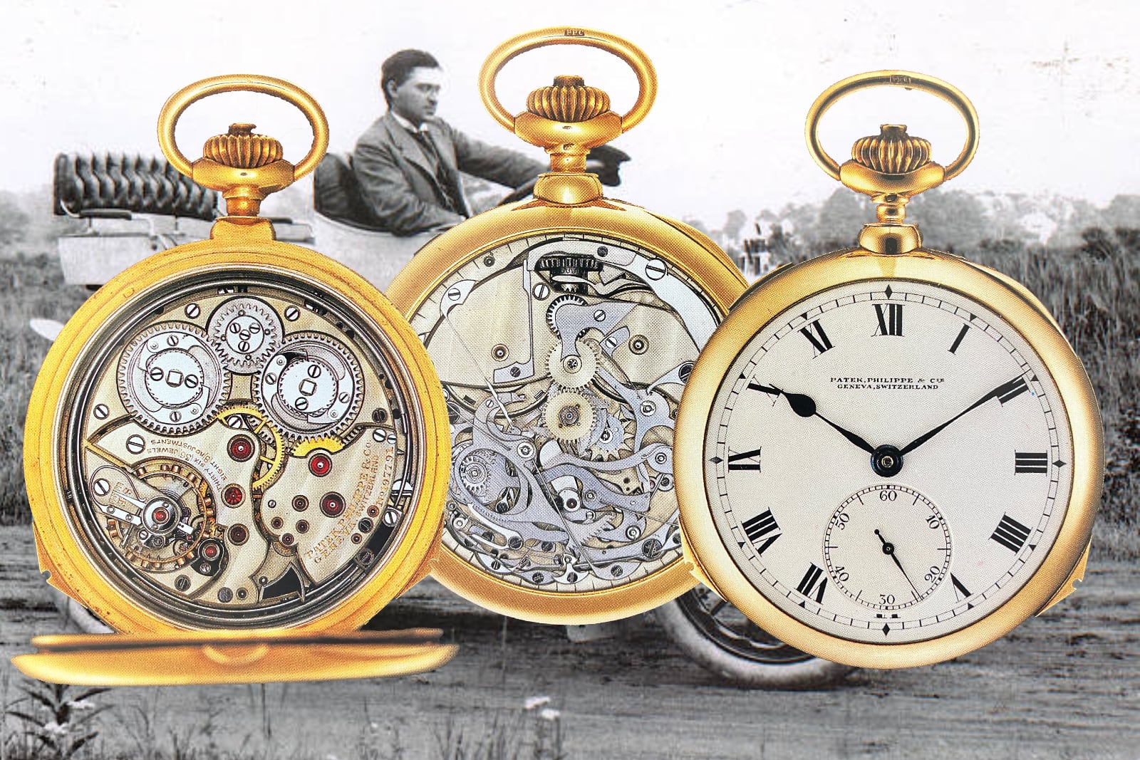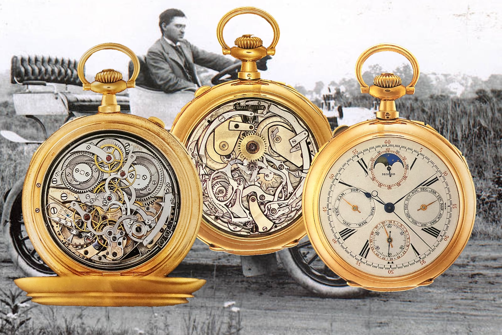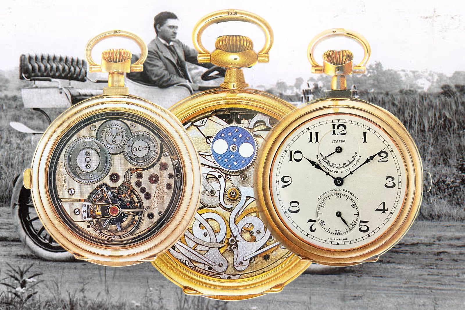 Patek Philippe “The Packard” no. 198’023 double-faced with 10 complications completed in 1927. Image – Patek Philippe/collage
