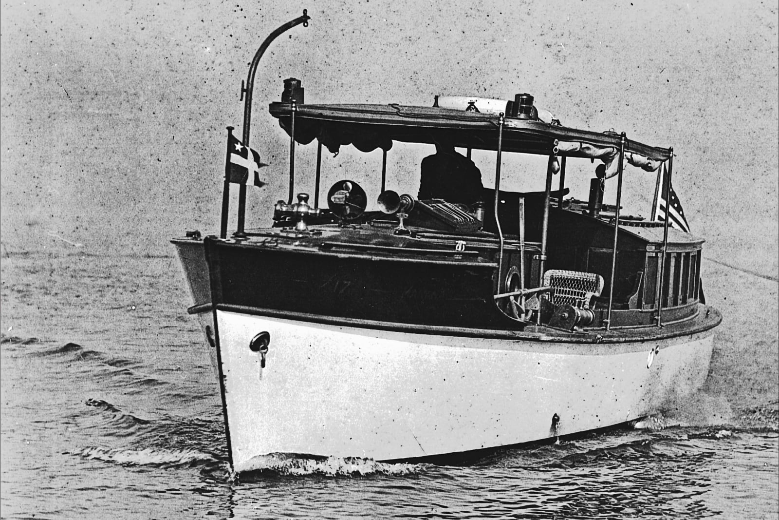 Yacht christened Manana owned by James Ward Packard underway on Chautauqua Lake. Image – Lakewood Historical Society