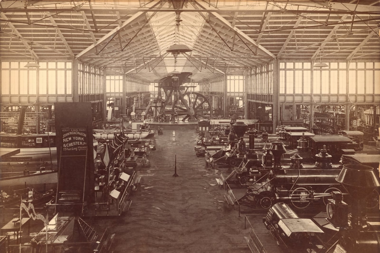 Machinery Hall at the 1876 Philadelphia Centennial International Exhibition. The Corliss at the center. Image – Library of Philadelphia