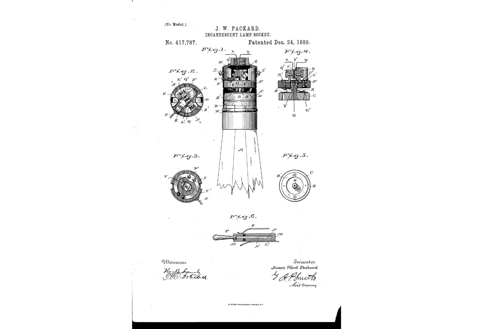 J. W. Packard’s incandescent lamp patent from 1889. Image – Wikipedia