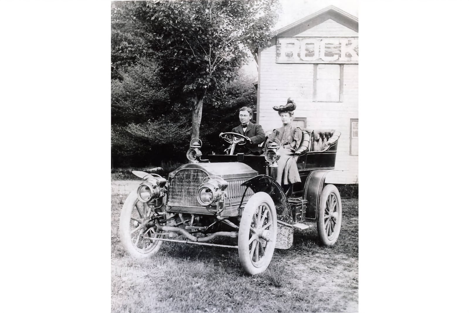 James Ward and his wife Elysabeth Gilmer Packard in an early Packard car. Image – Wikipedia