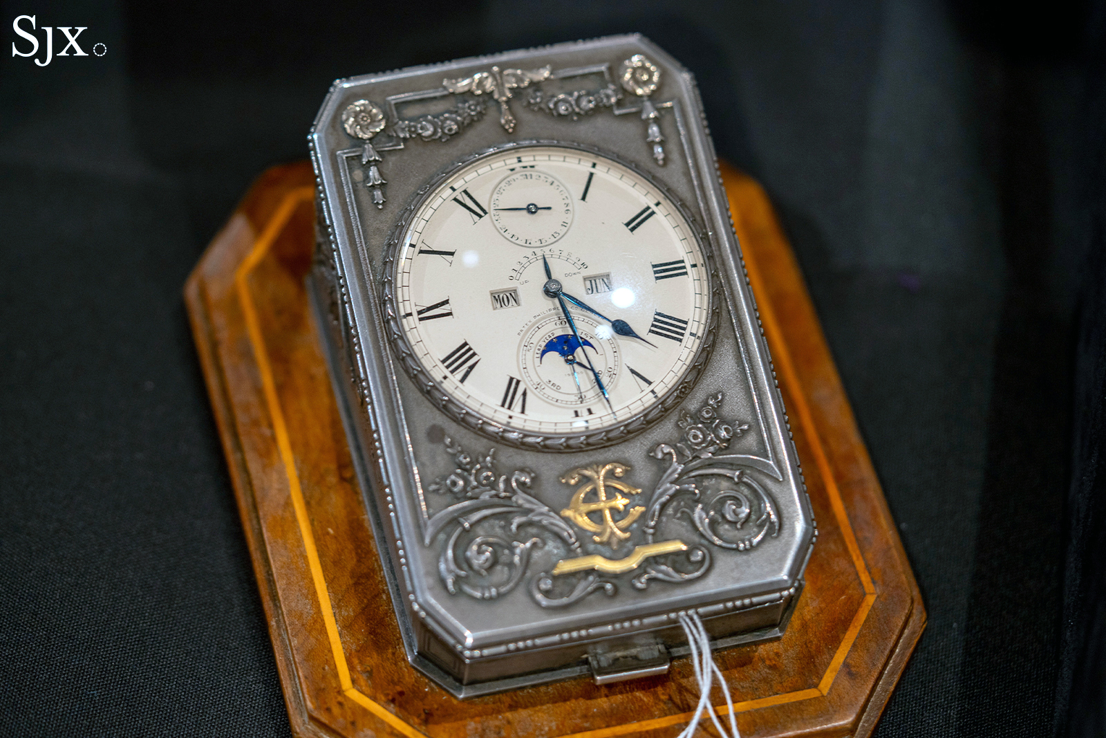 Viewed through the HIA catalogue, the full group divides clearly. Just under half of the 30 exhibits it displayed under his name were Patek Philippe. Around them, Packard placed English grand complications and chronometers from S. Smith & Son, Dent and Benson, including massive fusee tourbillon chronographs with Kew certificates and Admiralty trial records, along with a watertight explorer’s watch and detent chronometers of a type polar explorers might have carried.