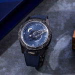 The starting point for the case was clearly that of the Freak One, being roughly the same size and sporting a similar construction. The first thing one notices is the texture; the heavily bead-blasted titanium surface has a rich matte finish looks almost die-cast (though it isn’t). That texture gives the case a distinctly industrial feel that complements the futuristic look of the movement.