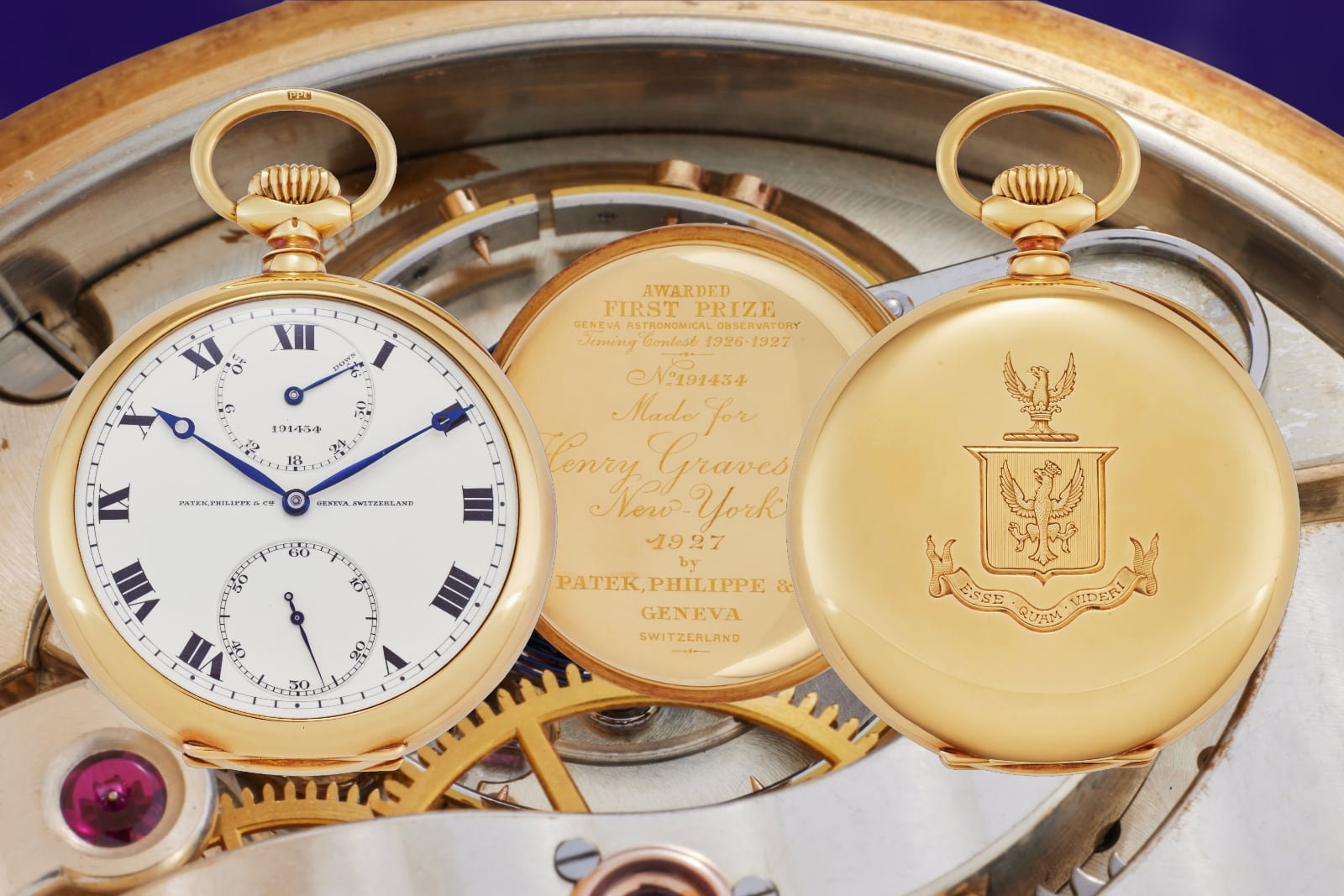 Movement No. 191’434, First Prize Observatory chronometer delivered to Henry Graves in 1927. Image – Sotheby’s/collage
