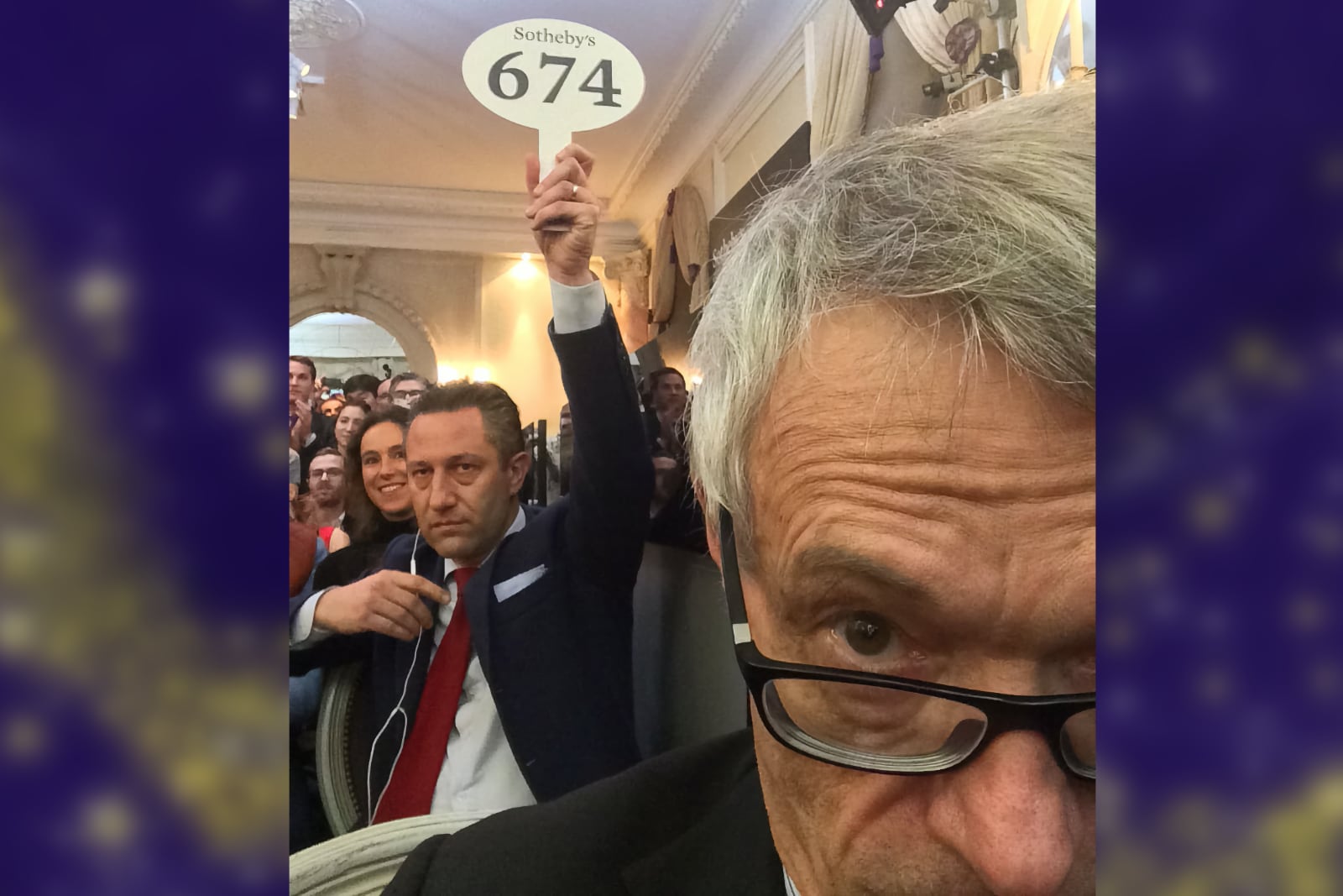 Paddle no. 674 in the hands of Aurel Bacs bidding the Henry Graves Supercomplication for 23,237,000 Swiss francs. A moment immortalised by Dr. Crott in a now famous “selfie” Image – Dr. Helmut Crott