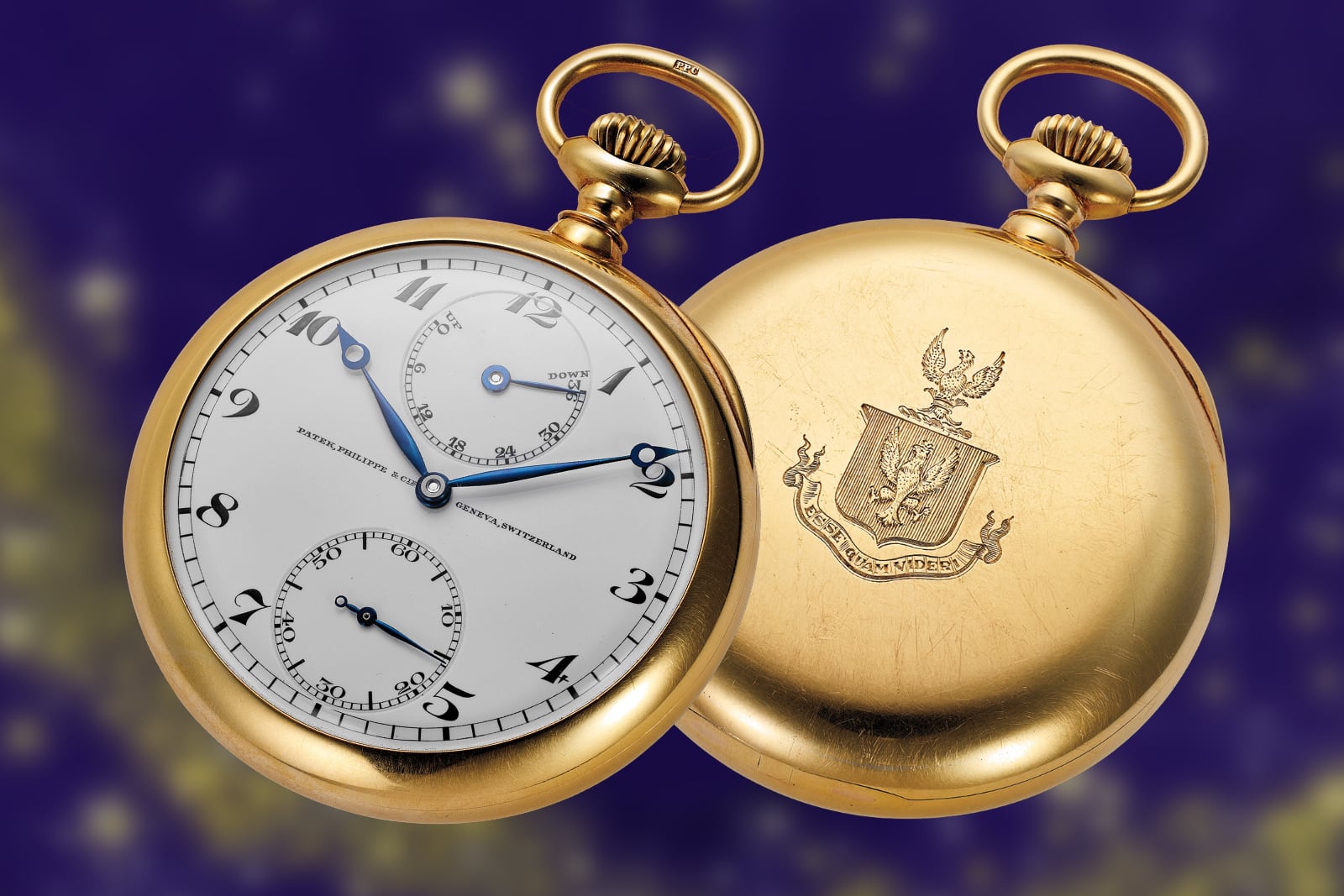 Of course, he also collected watches. An early watch that anchors his horological story is almost modest in outward form. In the 1910s Patek Philippe built a 50 mm gold pocket watch with hours, minutes, subsidiary seconds and a power-reserve display. The movement went through the Geneva Observatory trials and received its rating certificate in 1920. After casing, the firm shipped it through an American retailer. Graves acquired it in 1925 and had his family coat of arms and motto, Esse Quam Videri, engraved on the back.