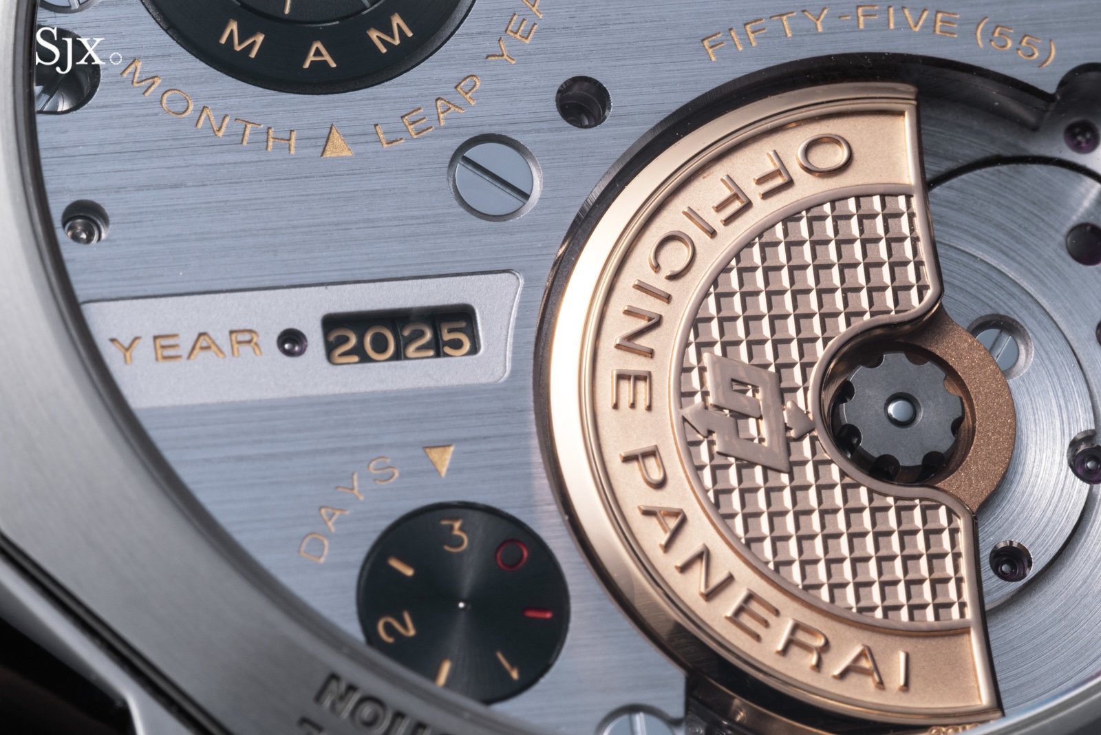 That makes Panerai’s perpetual all the more unusual, but it also makes sense. Panerai’s military-inspired look is all about legibility and robustness; the perpetual calendar complication offered a challenge on both fronts.