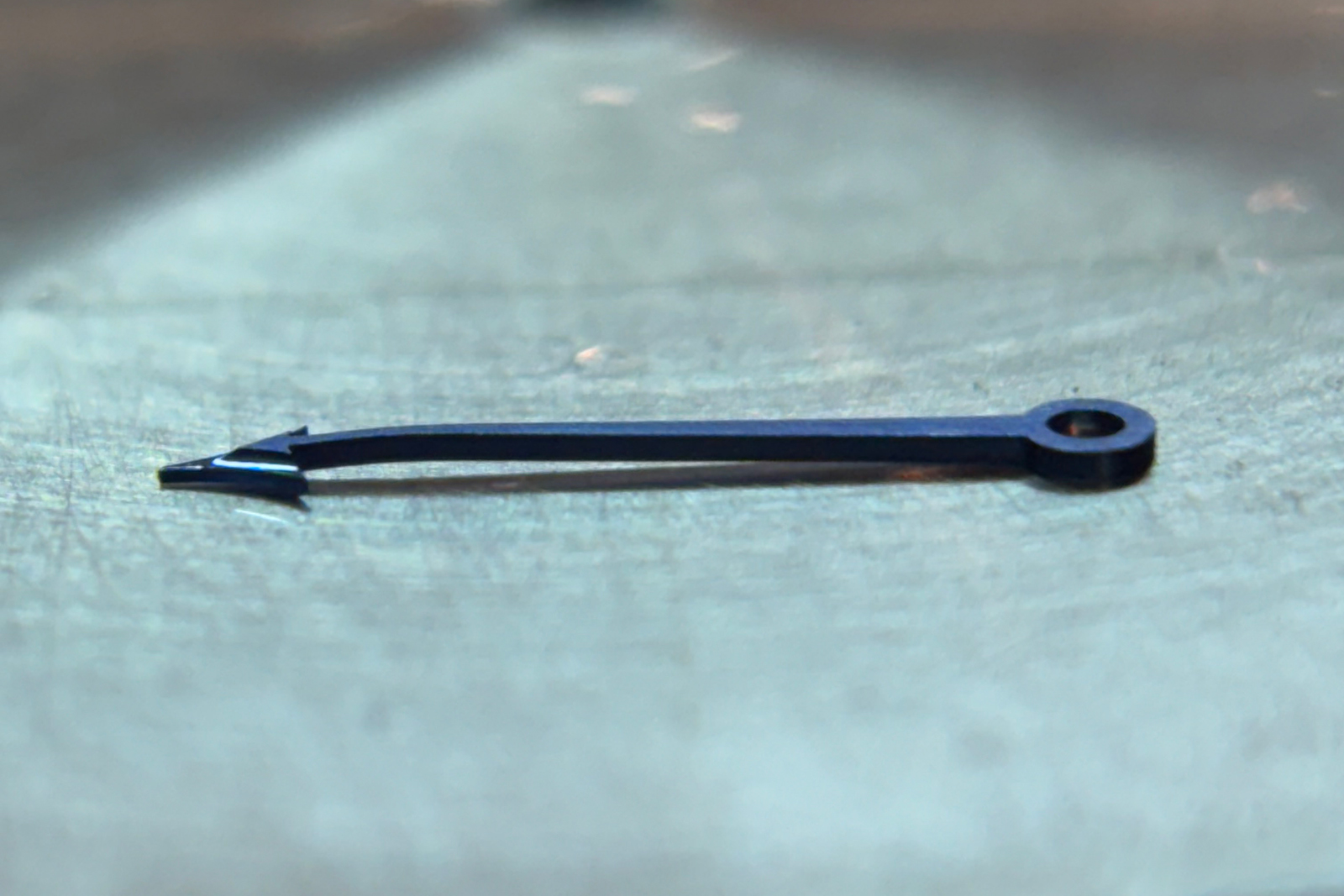 The blued and curved minute hand.