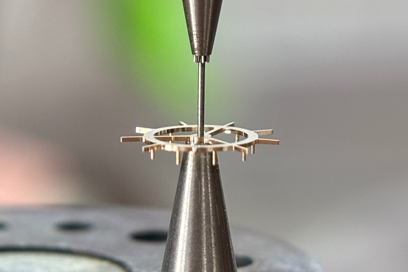 While the parting of impulse is particularly efficient and soft on the parts involved, the constant pressure of the long locking teeth on the balance staff acts as a friction brake, actively dampening the oscillator.