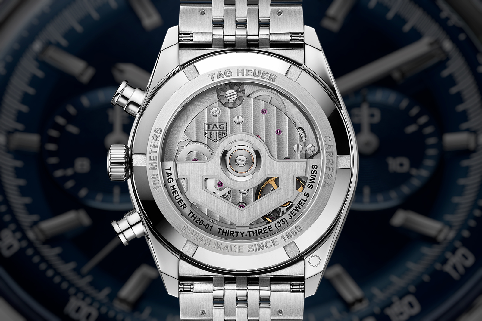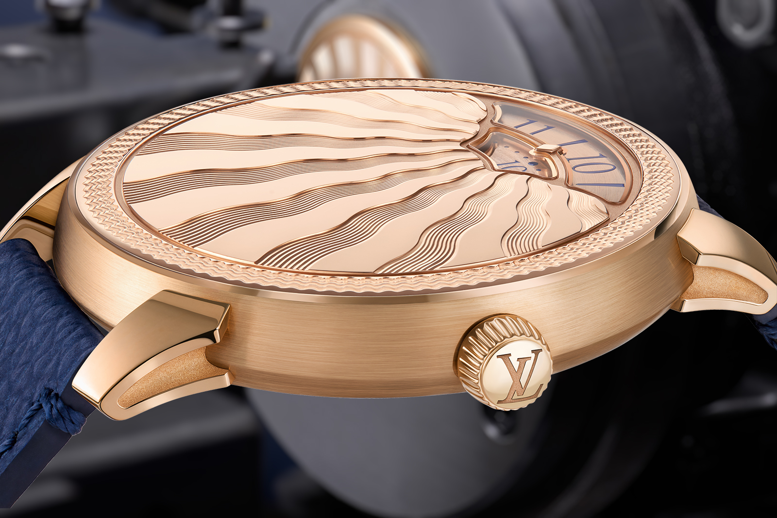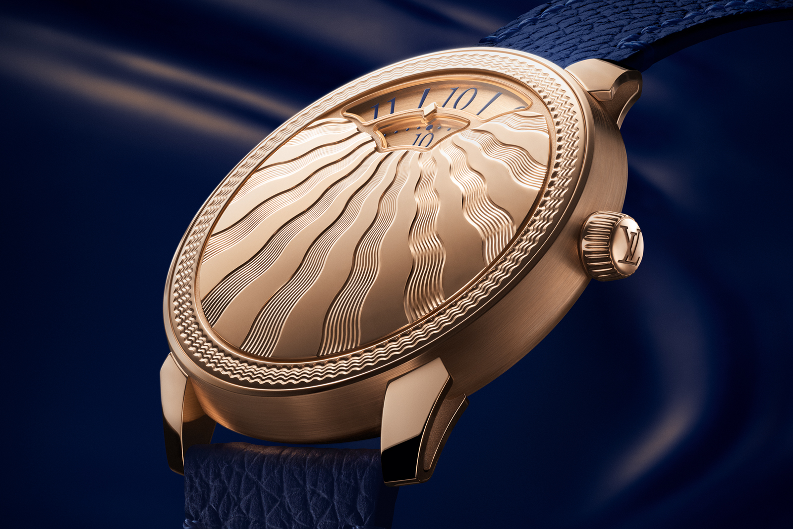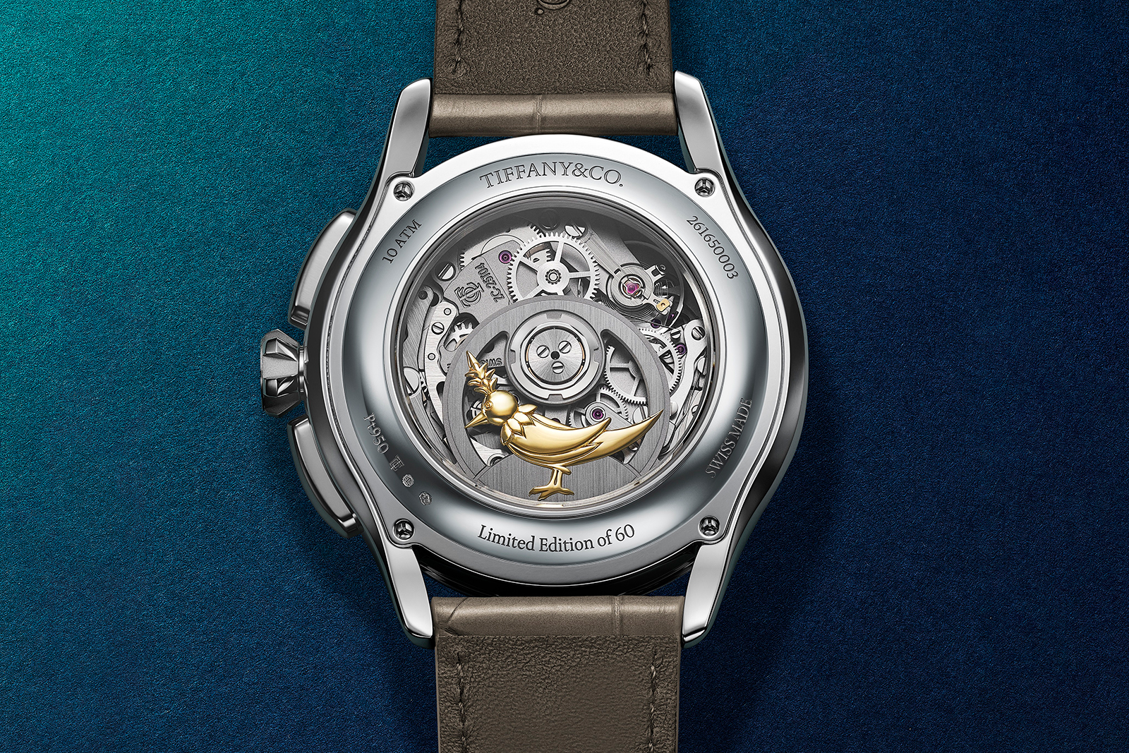 The case back features a saffron sapphire – Louis Vuitton’s corporate colour – to indicate the case is platinum. This subtle Easter Egg is likely inspired by Patek Philippe’s practice of placing a diamond between the lugs of its own platinum watches.