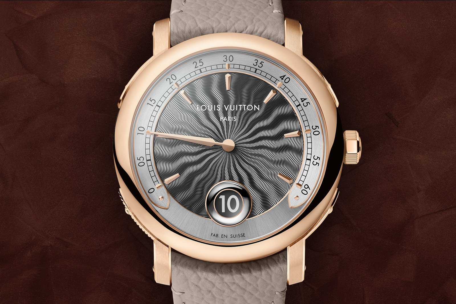 This reimagining of the worldtime complication draws directly from Louis Vuitton’s heritage of hand-painted personalised monograms on historical trunks — a visual language no other watchmaker can authentically claim — translating the brand’s trunk-making legacy into haute horlogerie.