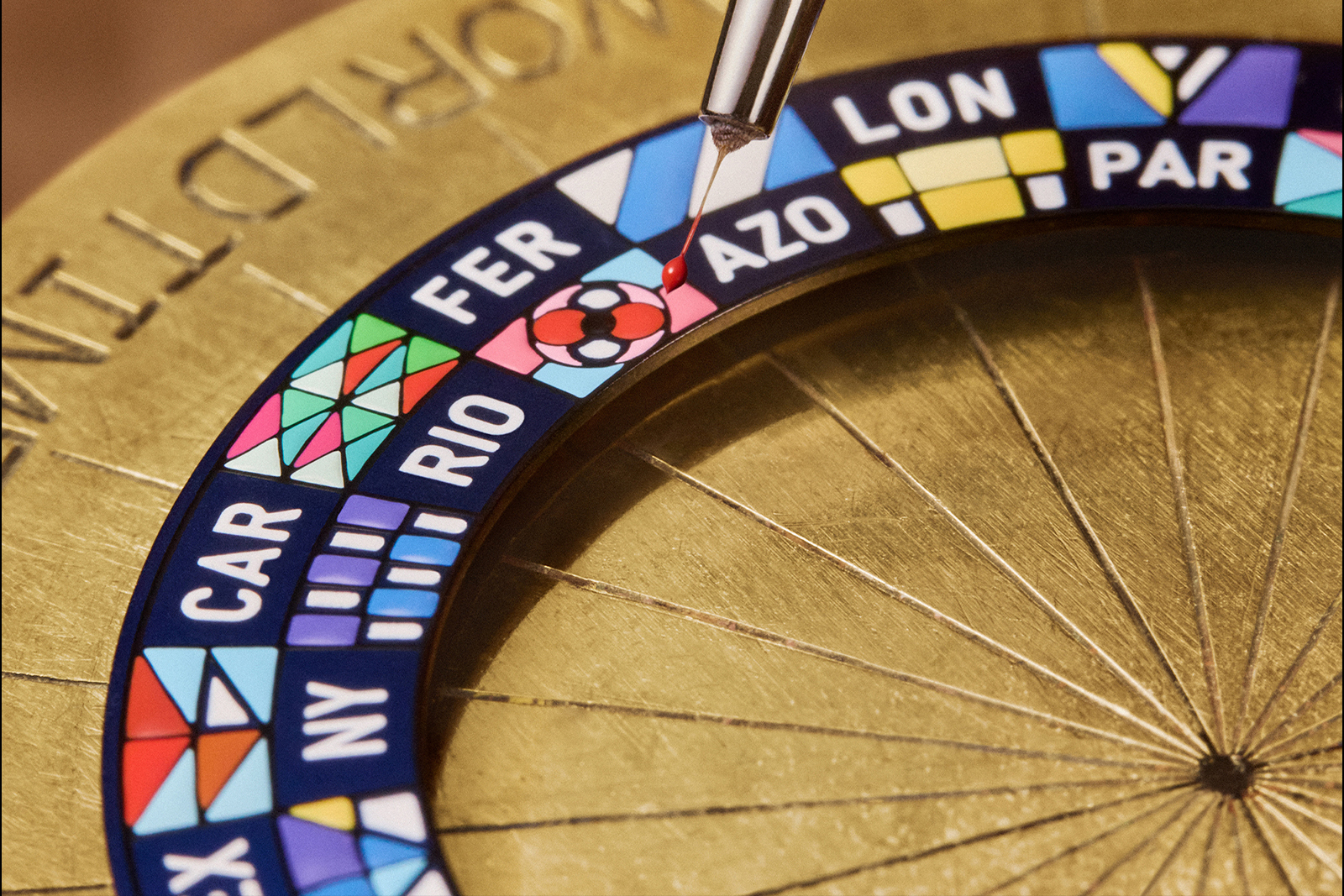 The worldtime is arguably Louis Vuitton’s second signature complication, just after the Spin-Time, and the complication most associated with the Escale. Inspired by the brand’s long tradition of colourful hand-painted personalised monograms on historical trunks, the kaleidoscopic colour palette is immediately recognisable.