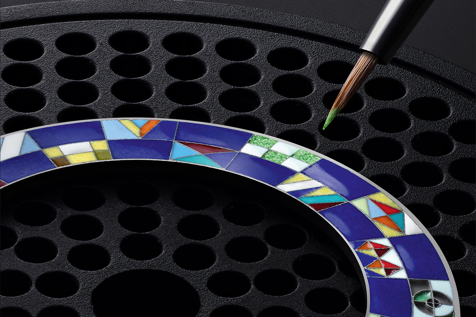 The champlevé enamel city ring of the Worldtime Tourbillon requires 40 firings due to its many different colours. The brand discovered some pigments could endure more firings that others without a change in colour and developed its process around that. The two most delicate pigments, light pink and green, are applied last. The brand claims it takes about 80 hours of work to make each ring, which is easy to believe considering the extreme number of firings and controlled cooling cycles required.