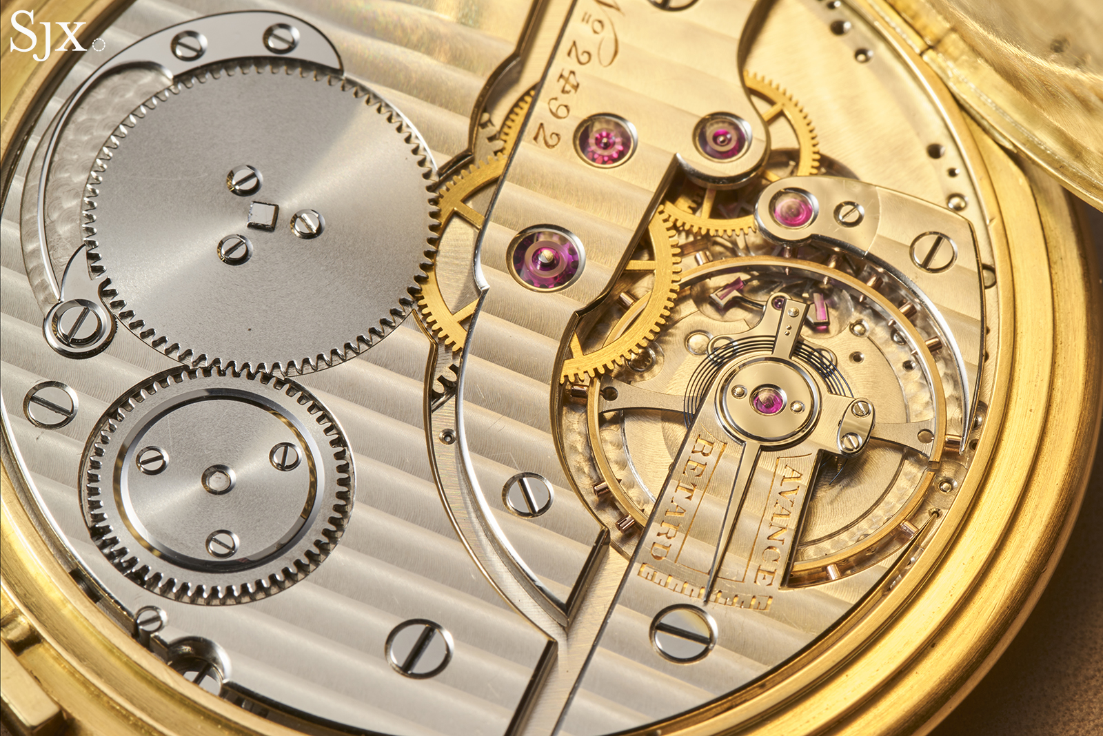 That tradition can be seen in action with the base movements of pocket watches like No. 2492, as well as the Breguet-inspired Patek Philippe watches mentioned earlier, which feature an off-centre “centre” wheel, which is responsible for the eccentric hour and minute hands that sit slightly below the centreline of the dial. Today this effect is often achieved using a dial-side add-on, such as a the perpetual calendar module found in the modern Breguet Classique Calendrier 7337.