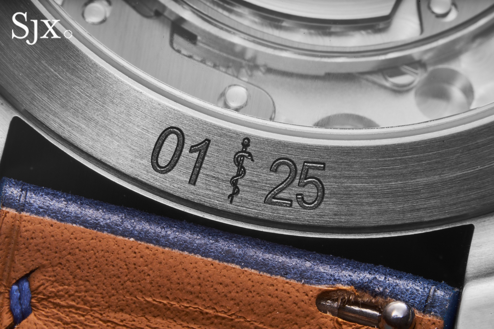 Each case is individually numbered, out of the 25 pieces available in each colourway. But in lieu of the common slash mark or dash between the case number and the edition size, the Rod of Asclepius makes an appearance.