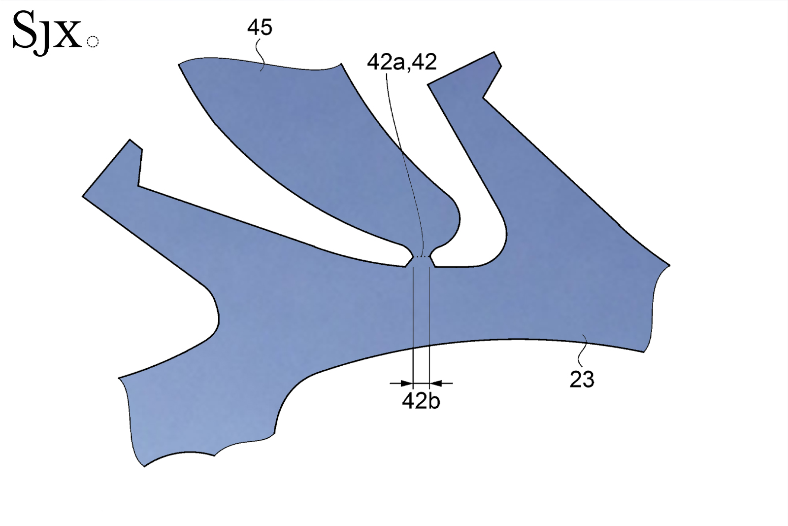 The detatch point, reminiscent of injection molding gates. Image – JP7087873B2, coloured and edited by the author.