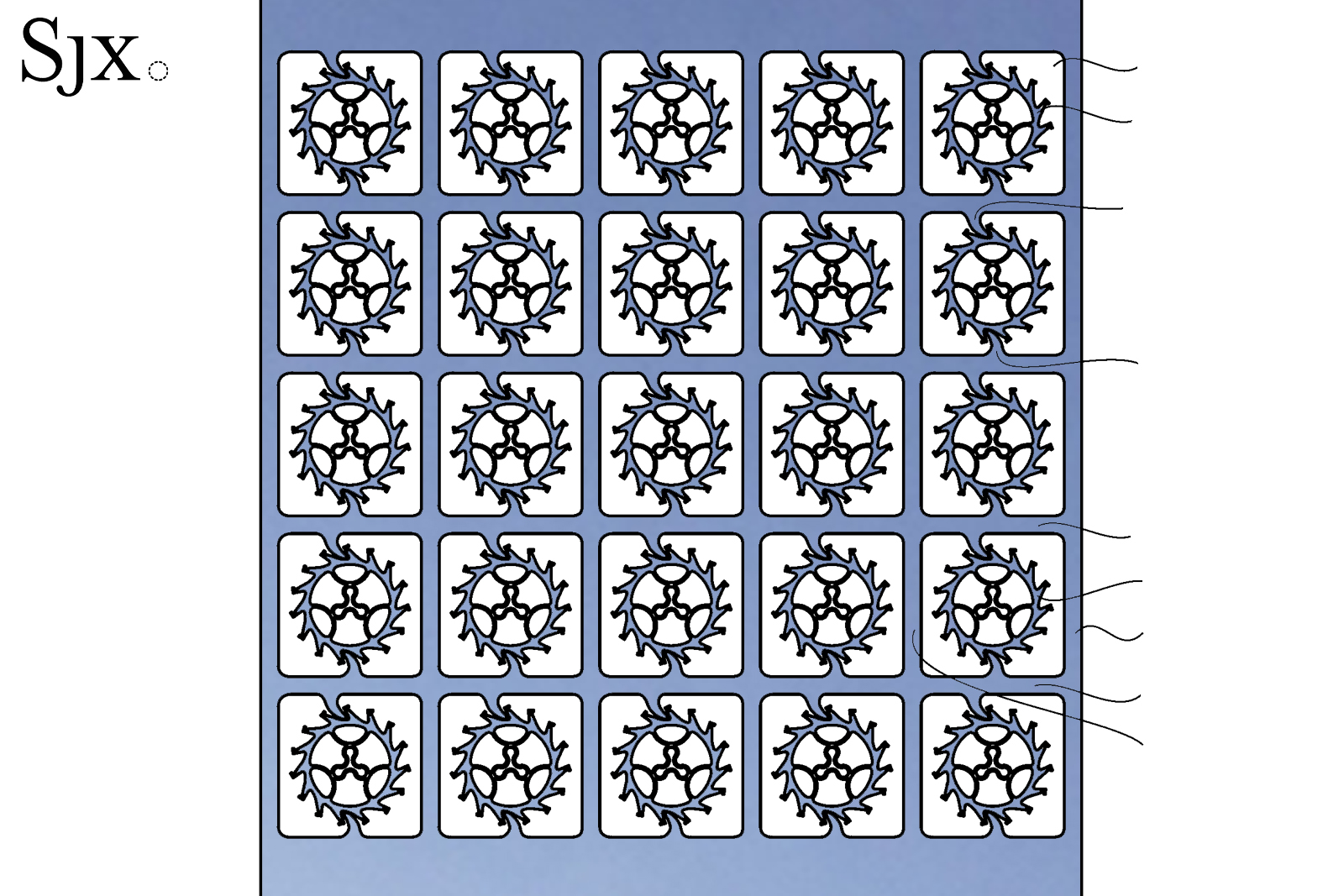 A silicon wafer of escape wheels. Image – Seiko Epson