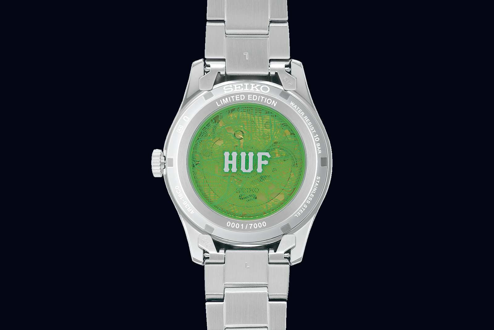 The case back is emblazoned with a map of HUF’s hometown: San Francisco.