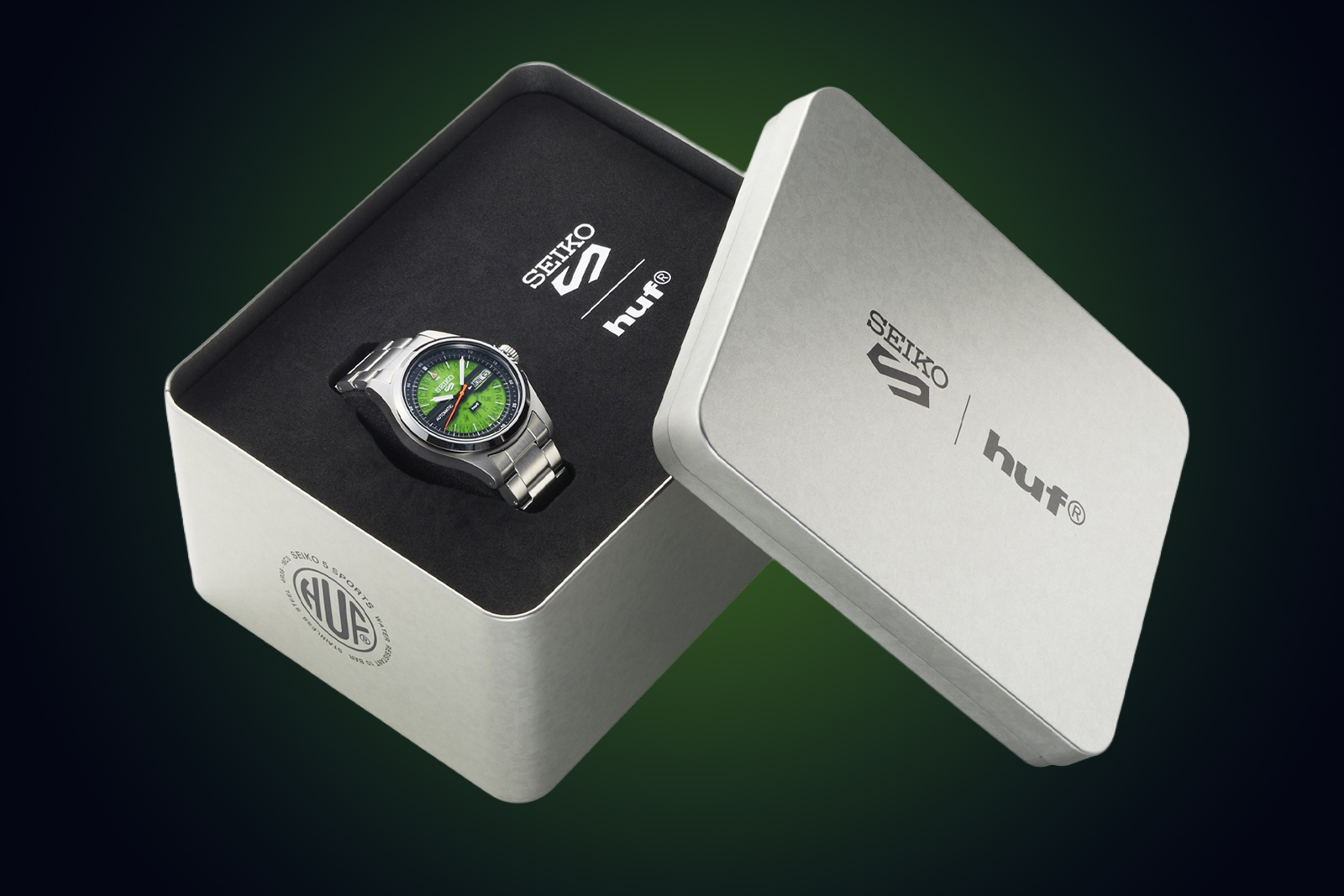 Like most Seiko limited editions, each watch is individually numbered (with the limited edition number replacing the serial number) which isn’t always the case with limited edition watches, regardless of price point. Another thing Seiko does well with limited edition is the packaging, which in this case, is a HUF-branded metal tin.