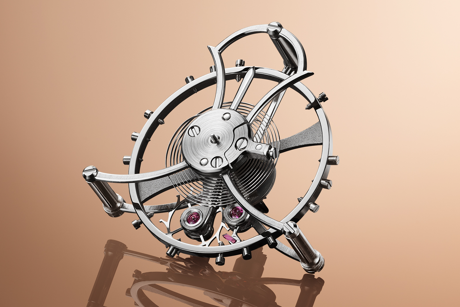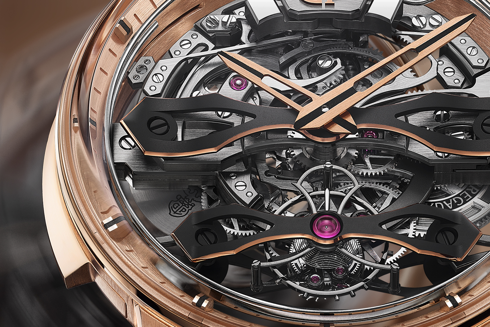 The tourbillon bridge looks suspended in mid-air, detached from the movement