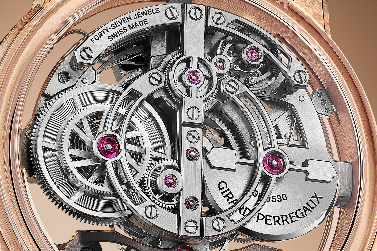 Small glimpses of a perlage-covered surface are visible under the racks on the dial, which is the only detail that evokes traditional decoration. Otherwise, the GP9530 is a refined, well-oiled but decidedly modern machine.
