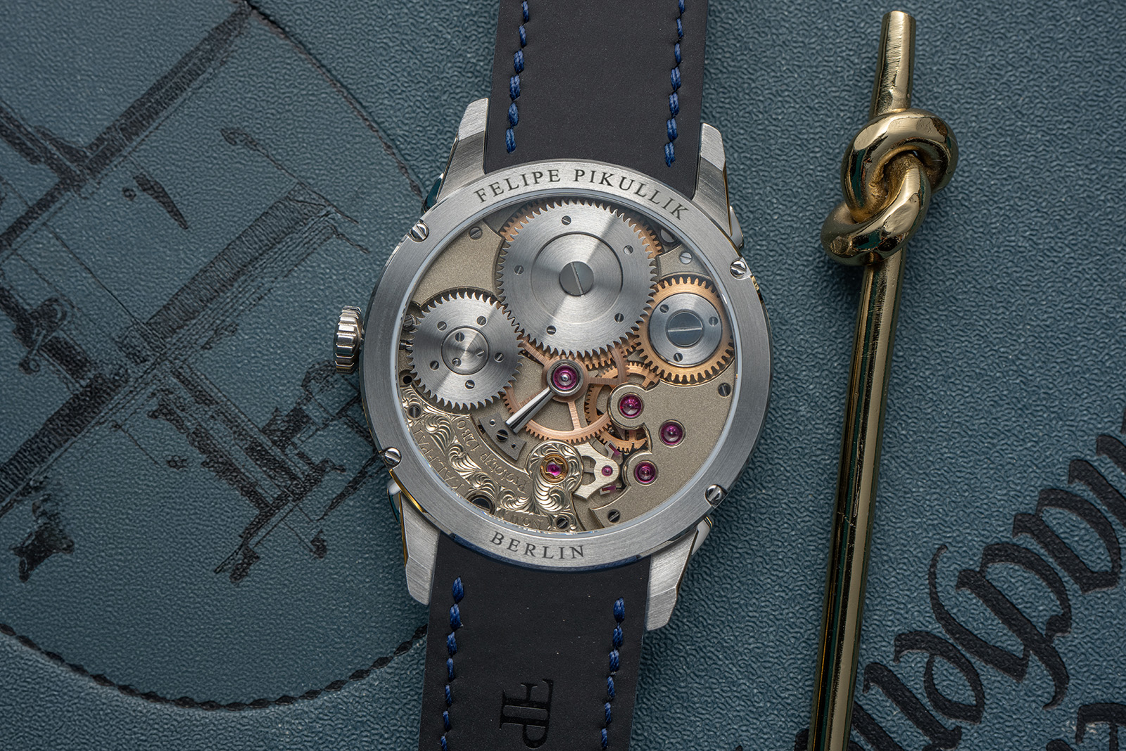 Mr Pikullik’s emergence into the crowded independent watchmaking scene was based on heavily skeletonised off-the-shelf movements. As he gained a reputation for deft finishing and began to consolidate his workshop, he slowly but surely transitioned toward in-house engineering.