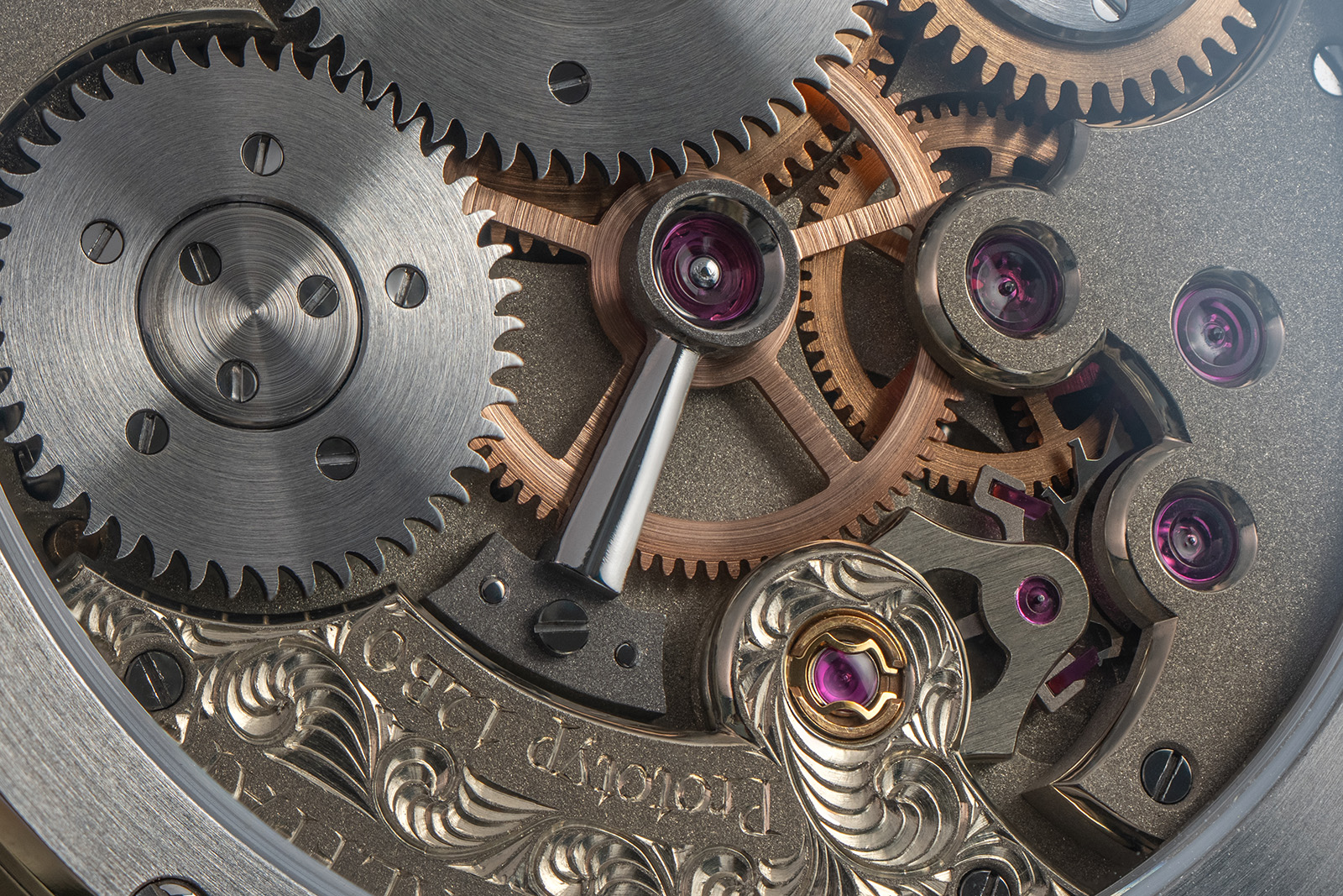 So while wolf’s teeth gears have been used before (they were introduced by Jean-Antoine Lépine as early as the 1770s), Mr Pikullik’s approach to the click system is rather novel. The watchmaker argues that the hard sliding of the click piece over the click wheel’s wolf’s teeth causes a degree of metal grinding, which over time creates debris inside the movement.