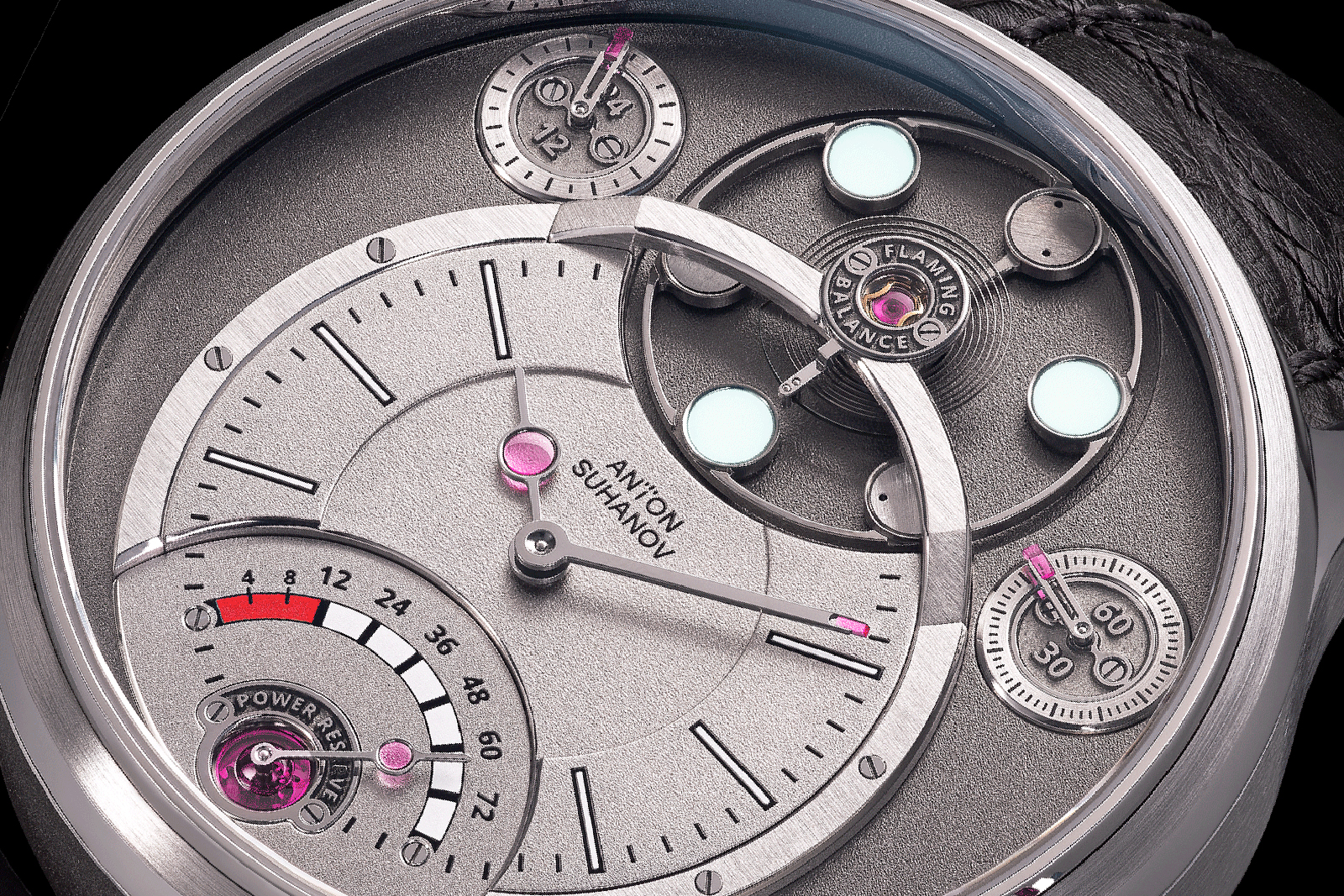 Depending on the colour, the minutes platform is either radially brushed, or simply grained in the case of the taupe ‘Latte’ configuration. The different textures lend each configuration a distinct personality.