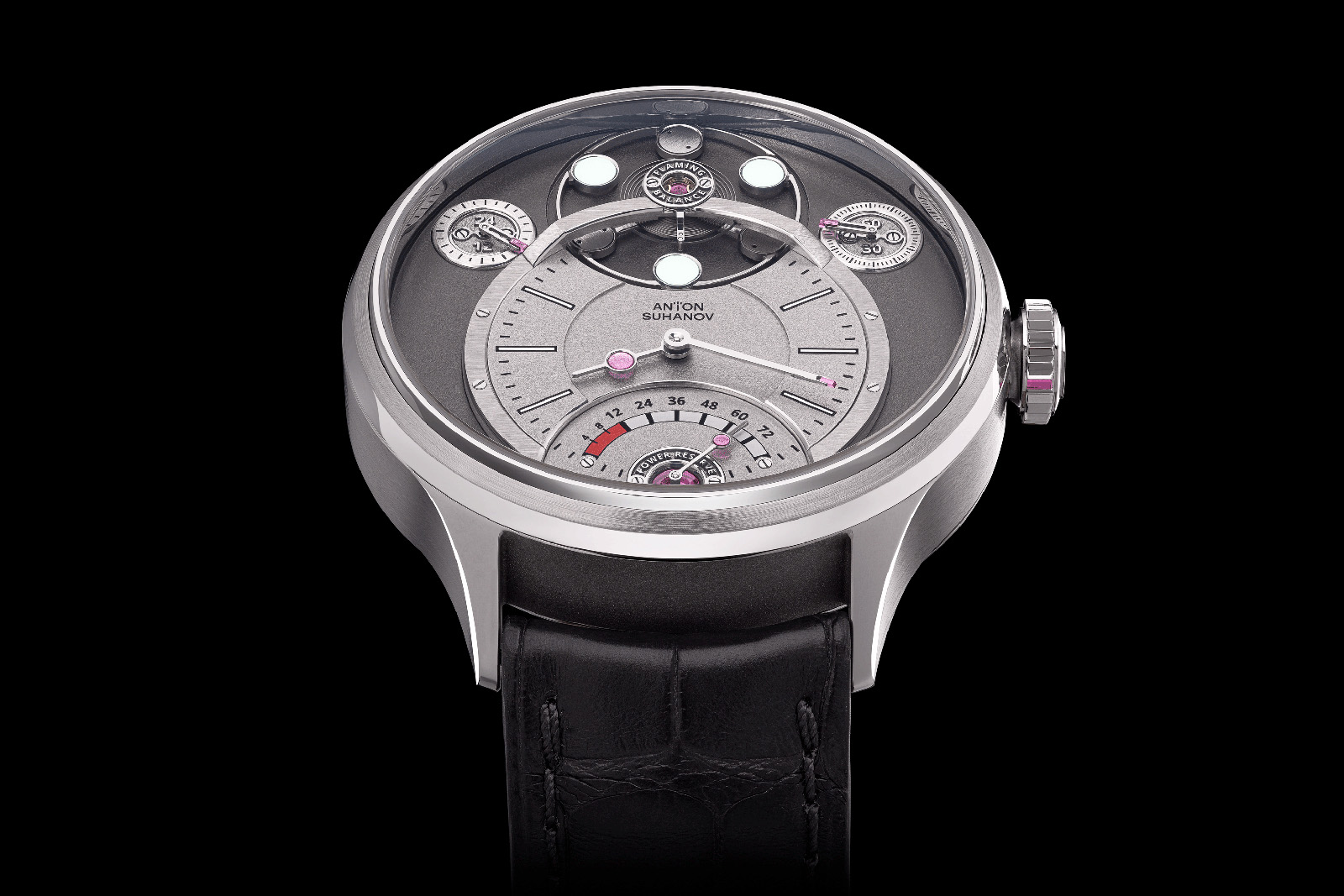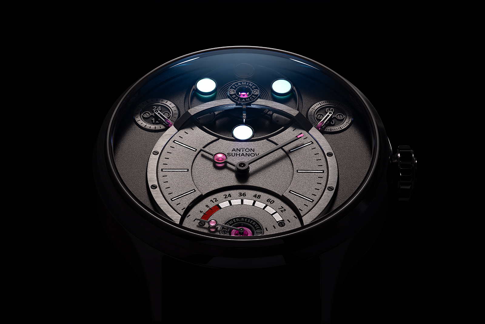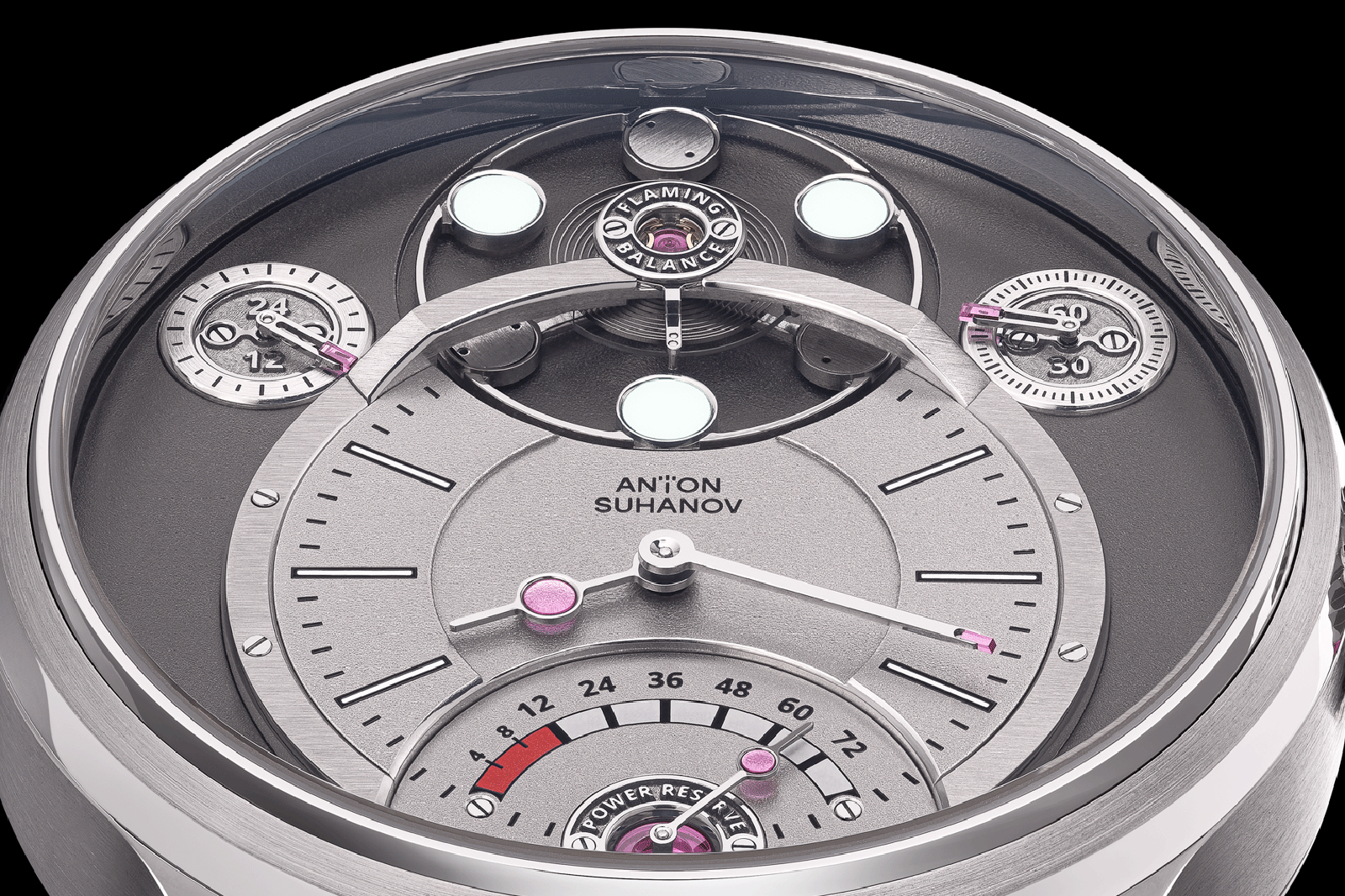 Much like all the modern ROCS modules, there is a system of mechanical bellows to compensate for changes in oil temperature, and the planetary gearing compensates for the platform’s continuous rotation, keeping the sub-dials vertical at all times.