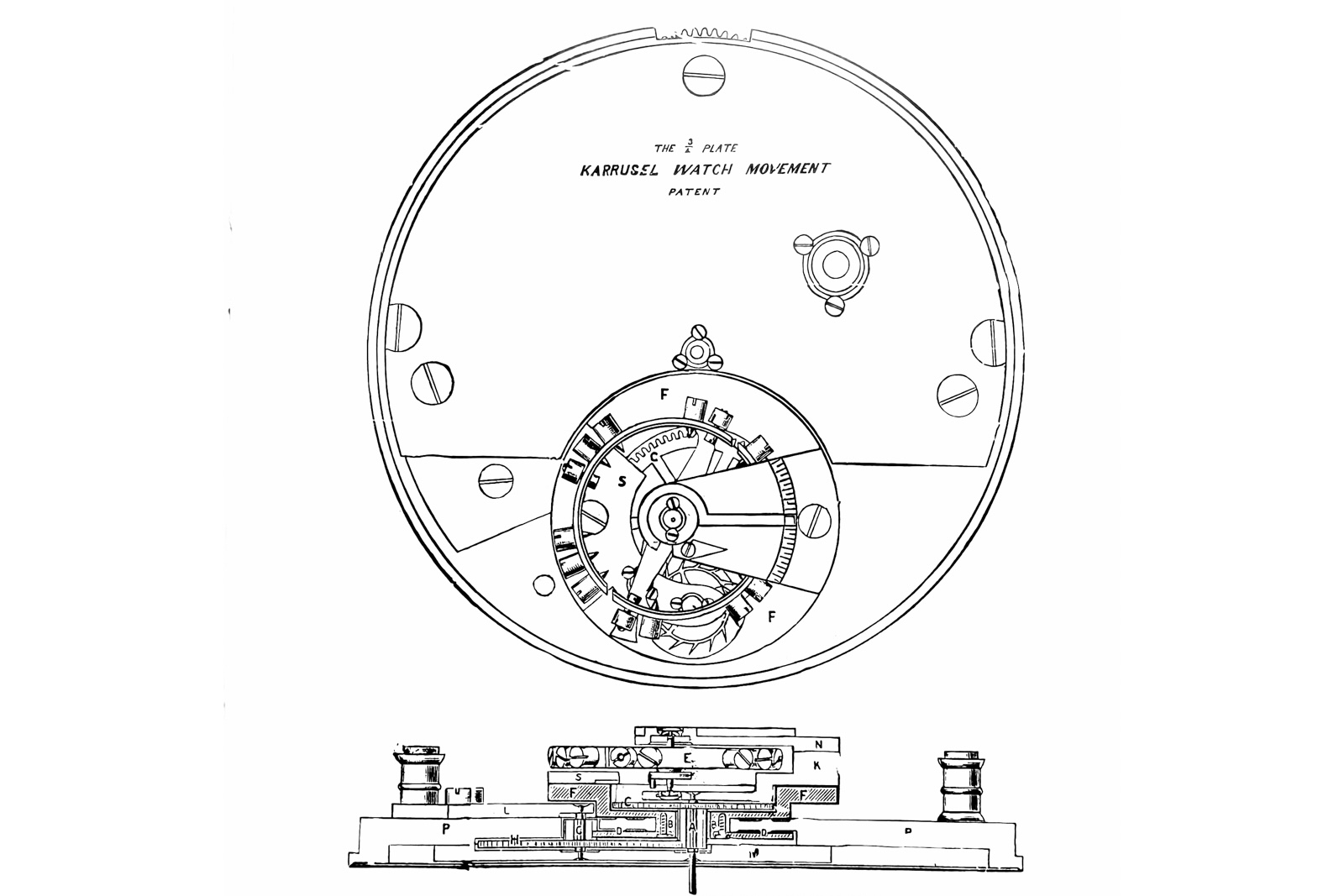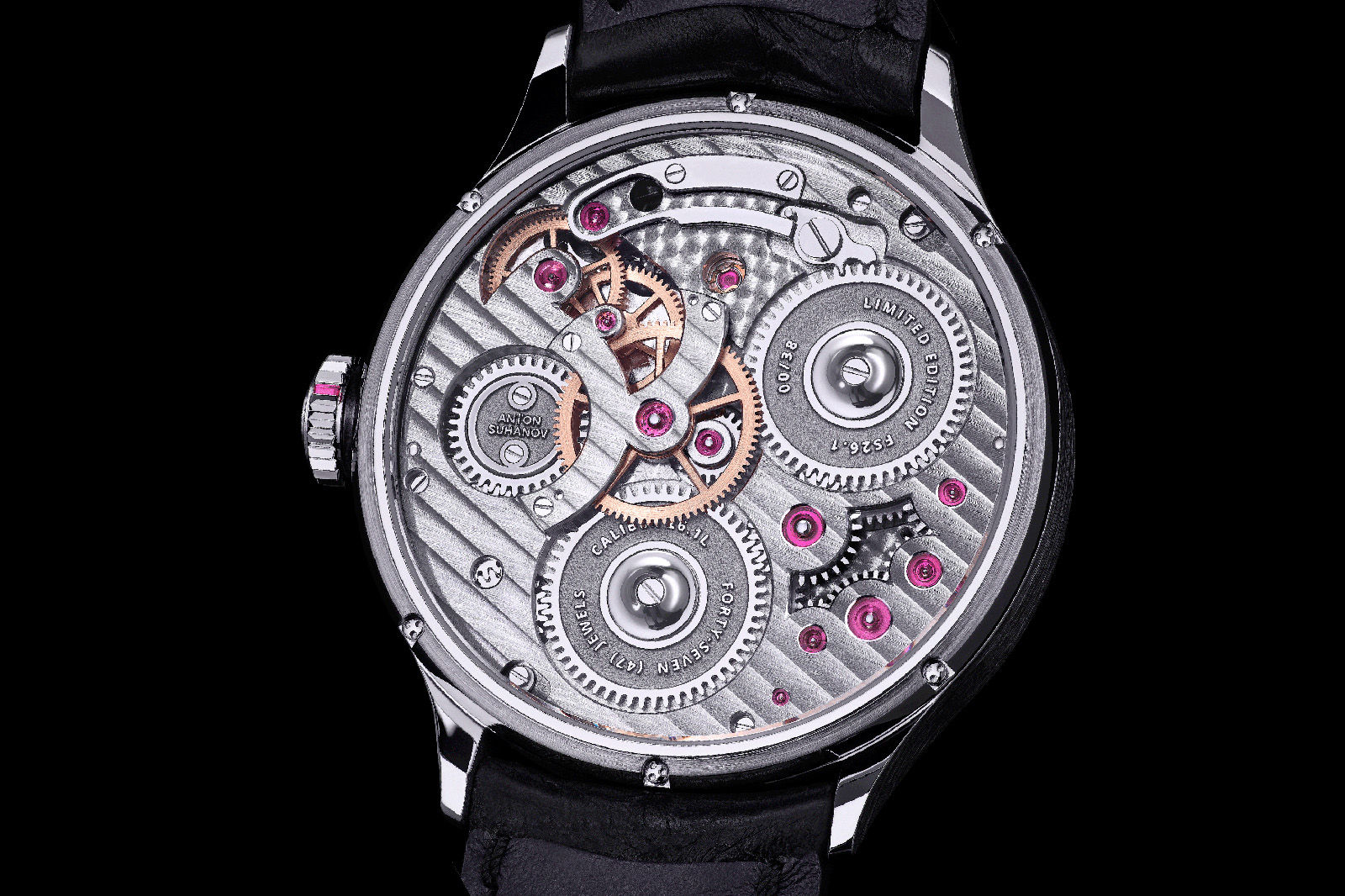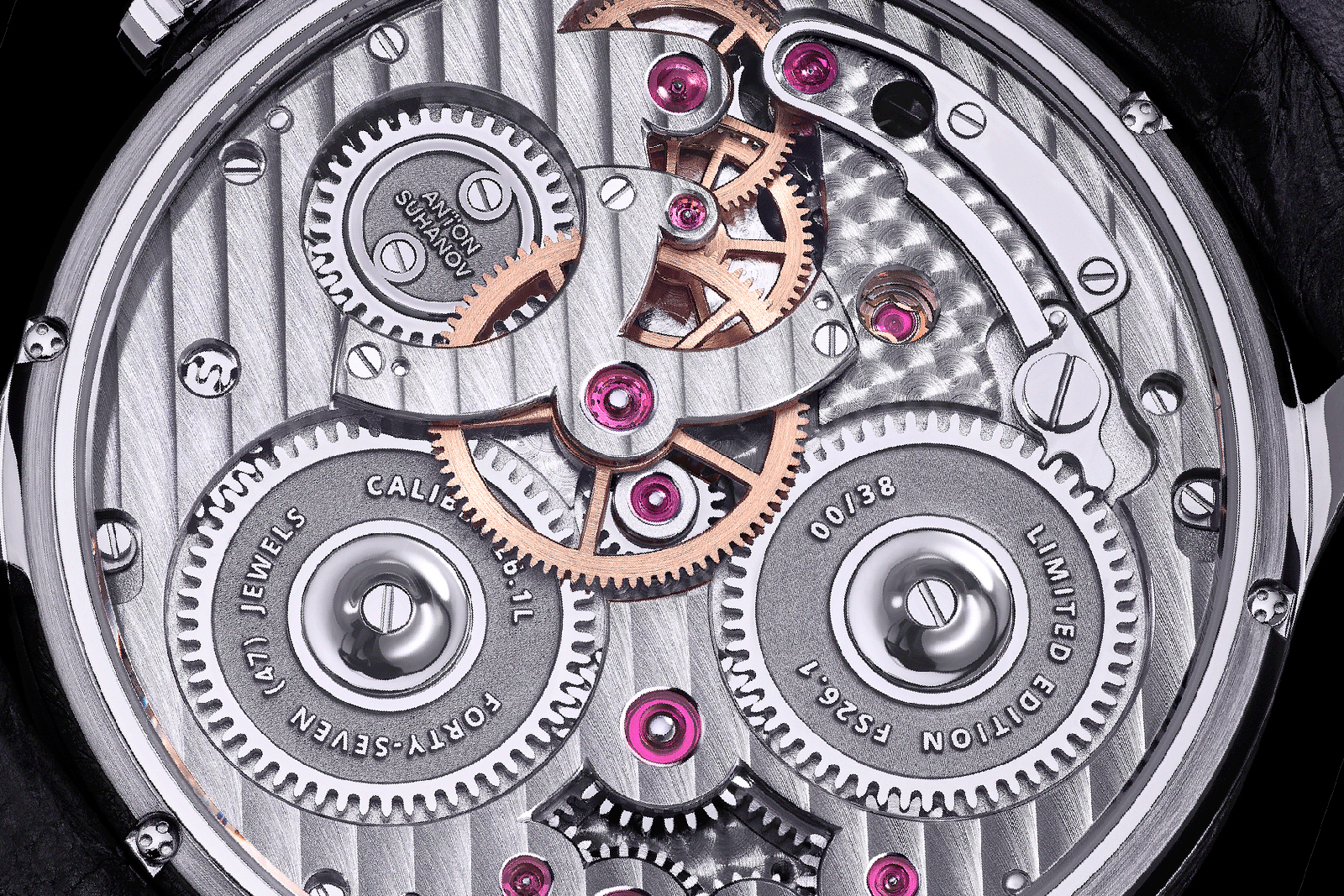 The two barrels appear to be serially-coupled for delivering the 60-hour power reserve and the movement features what looks to be an original stop-work system, not unlike a Maltese cross, that limits the winding and unwinding of the mainsprings.